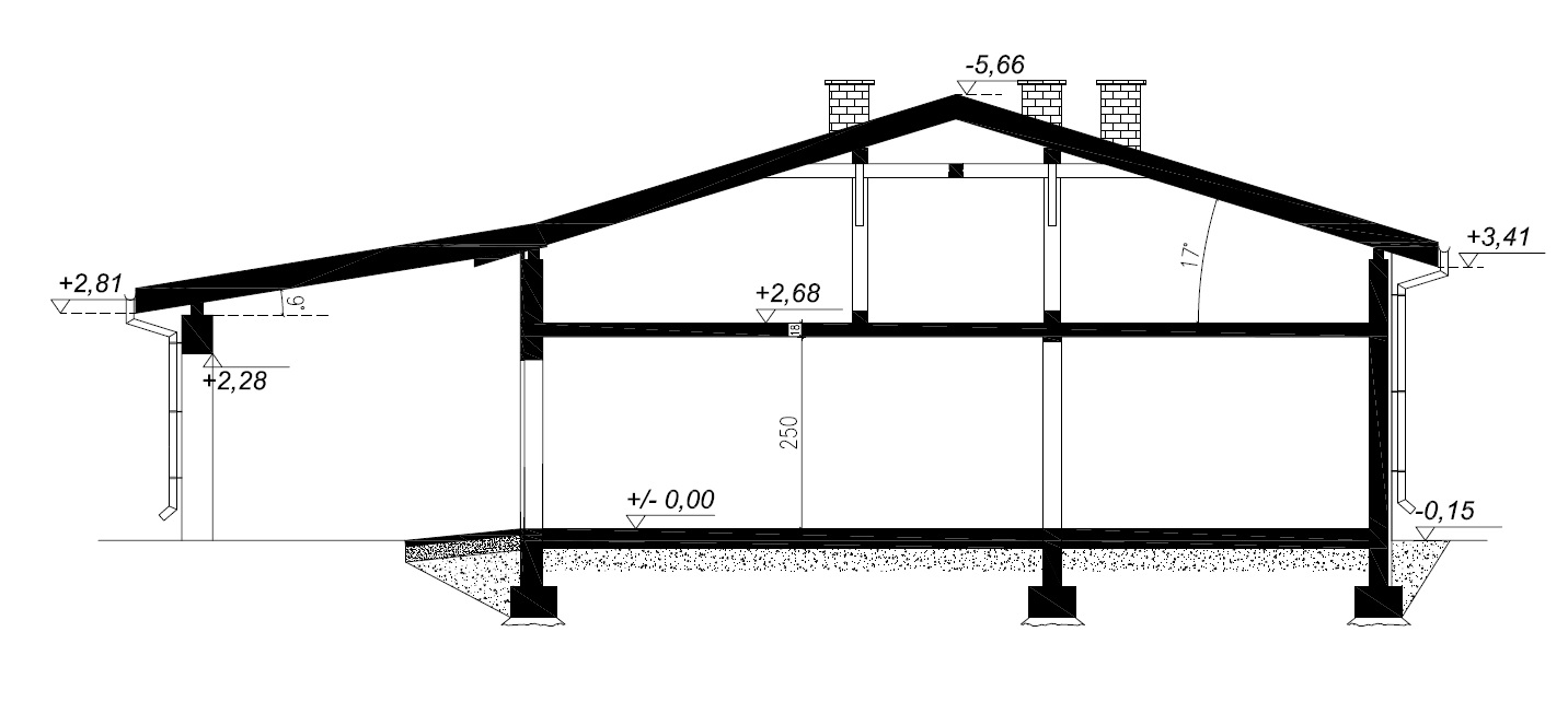 - Dach: dwuspadowy o kącie nachylenia 17° i 9°