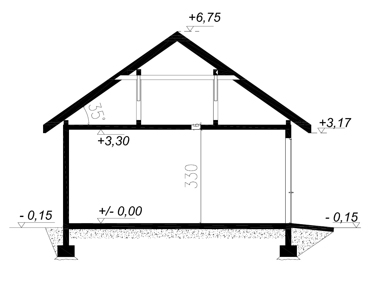 - Dach: dwuspadowy o kącie nachylenia 35°