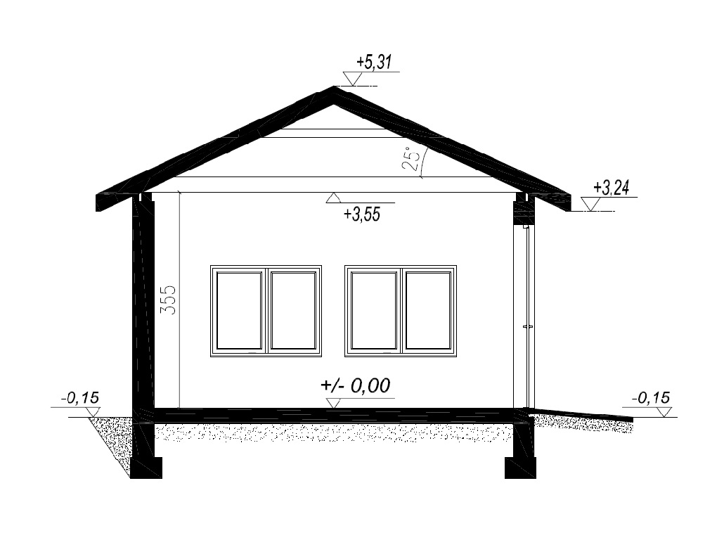 - Dach: dwuspadowy o kącie nachylenia 25°
