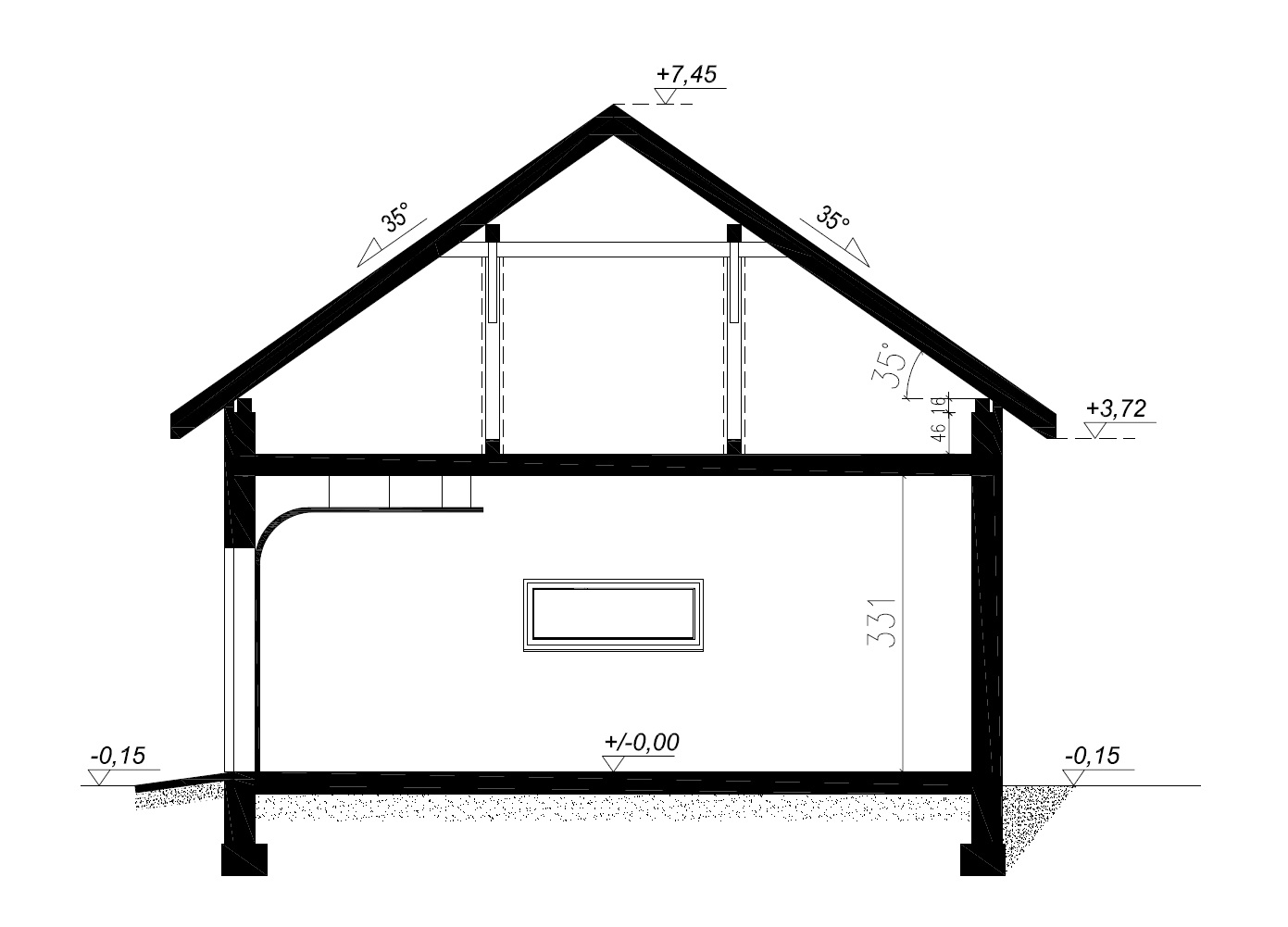 - Dach: dwuspadowy o kącie nachylenia 35°