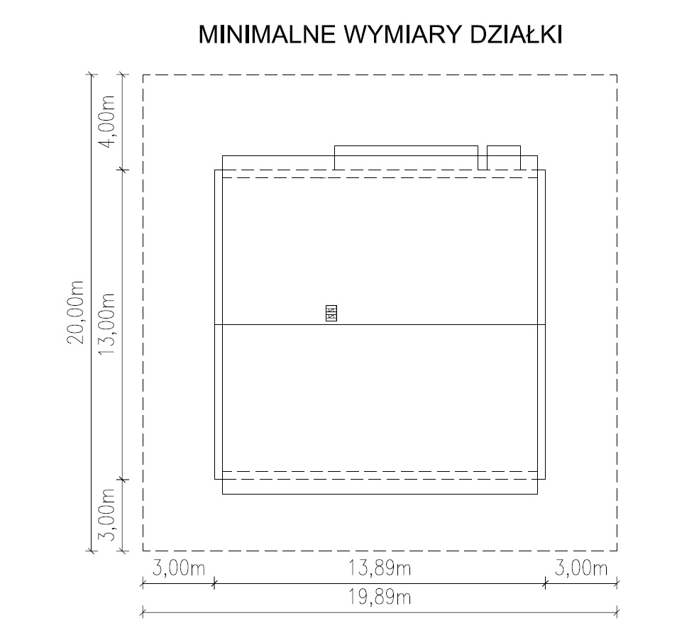 - Minimalne wymiary działki20,00x19,89 m