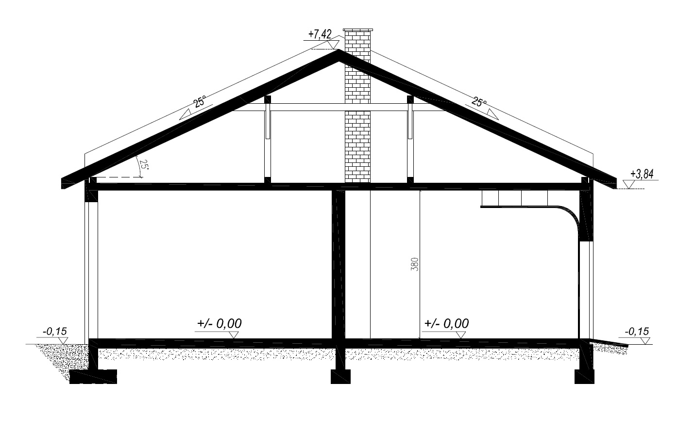 - Kąt nachylenia dachu25°