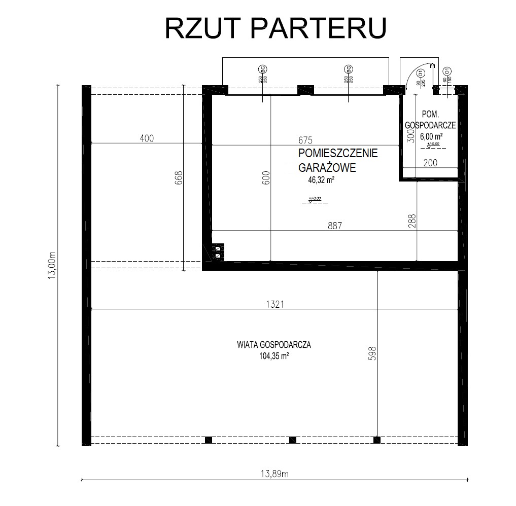 - Szerokość elewacji frontowej13.89 m