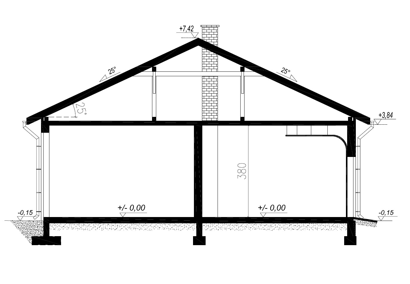 - Kąt nachylenia dachu25°