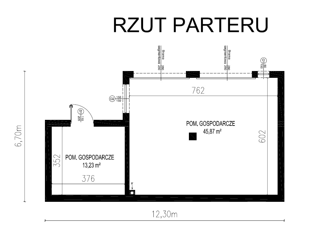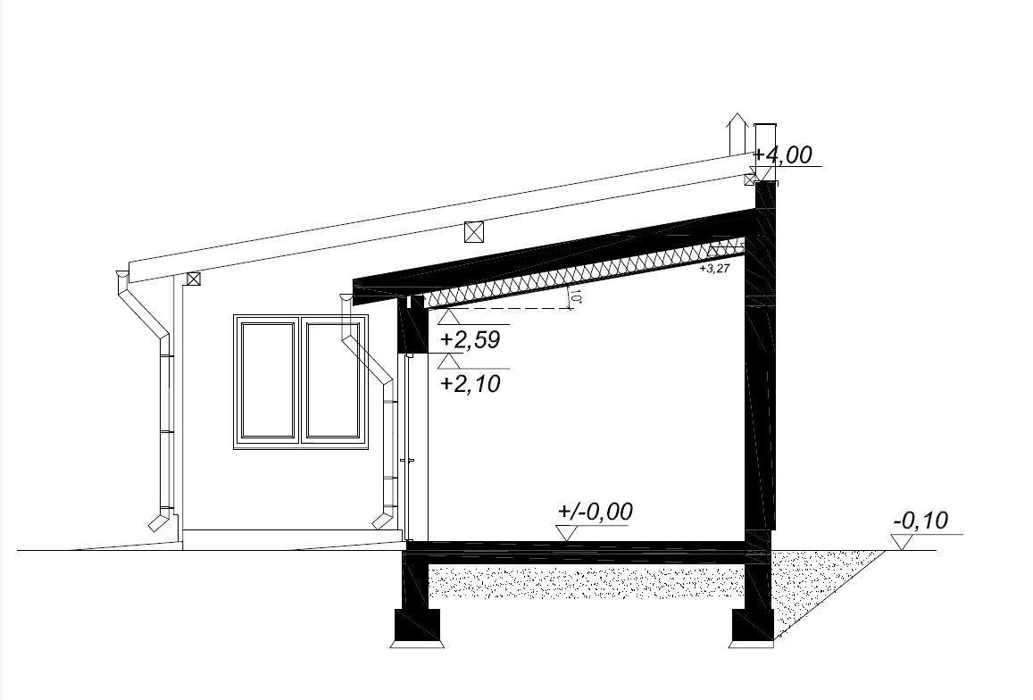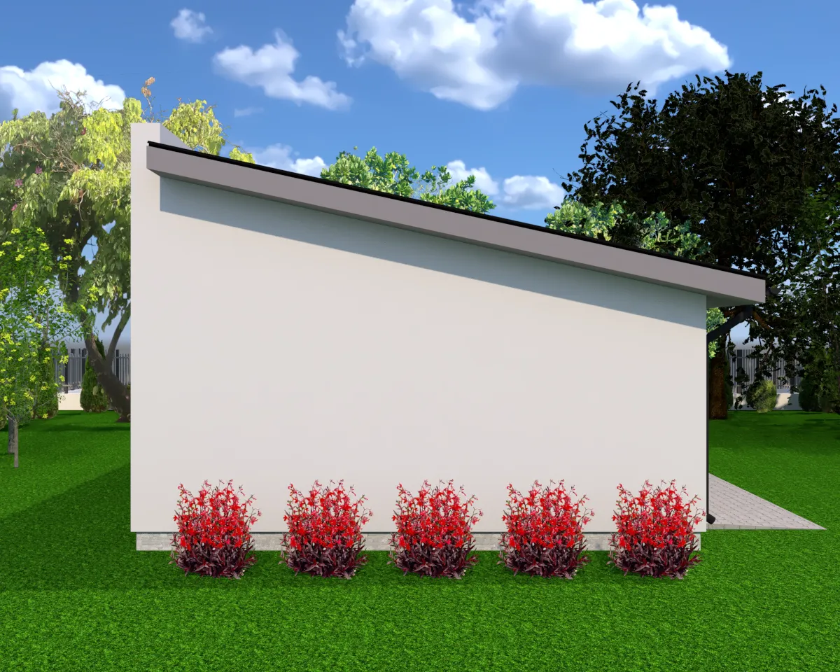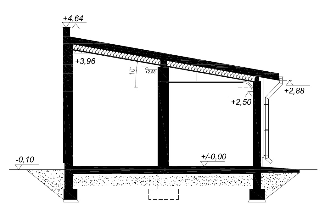 - Dach: jednospadowy o kącie nachylenia 10 °