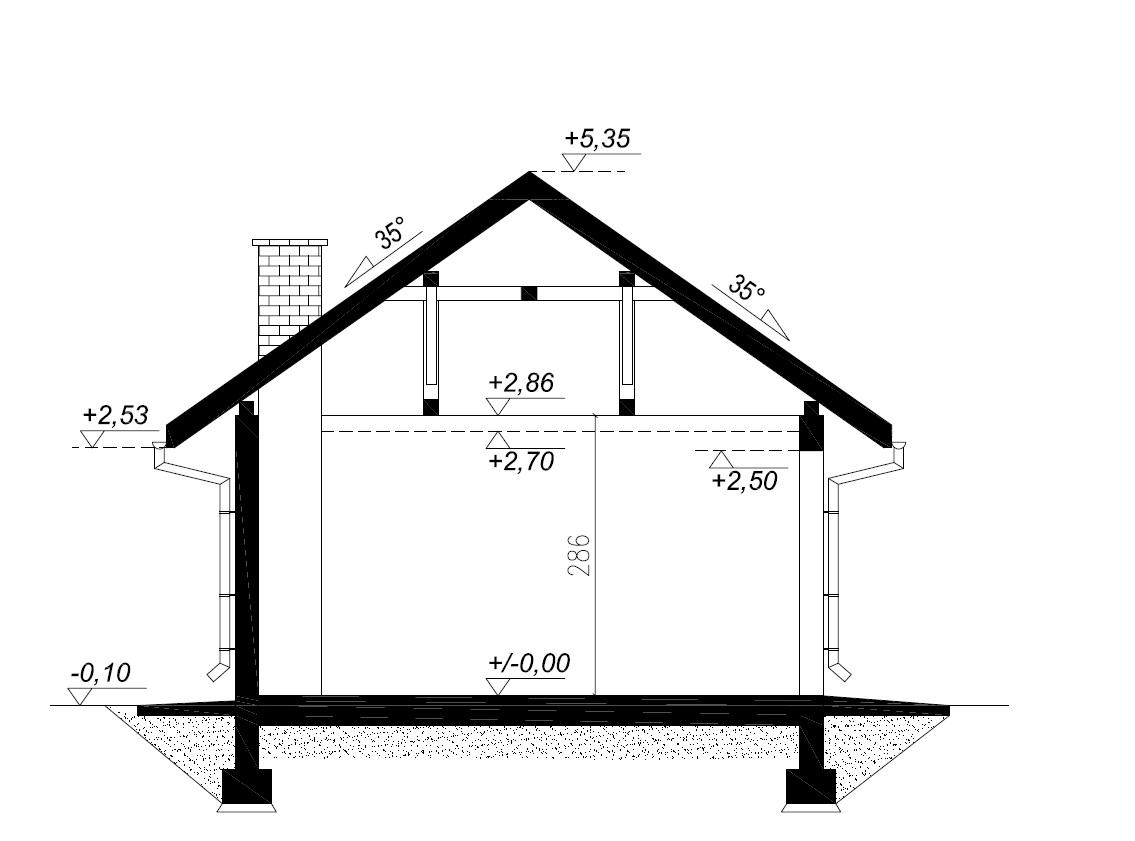 - Dach: dwuspadowy o kącie nachylenia 35 °