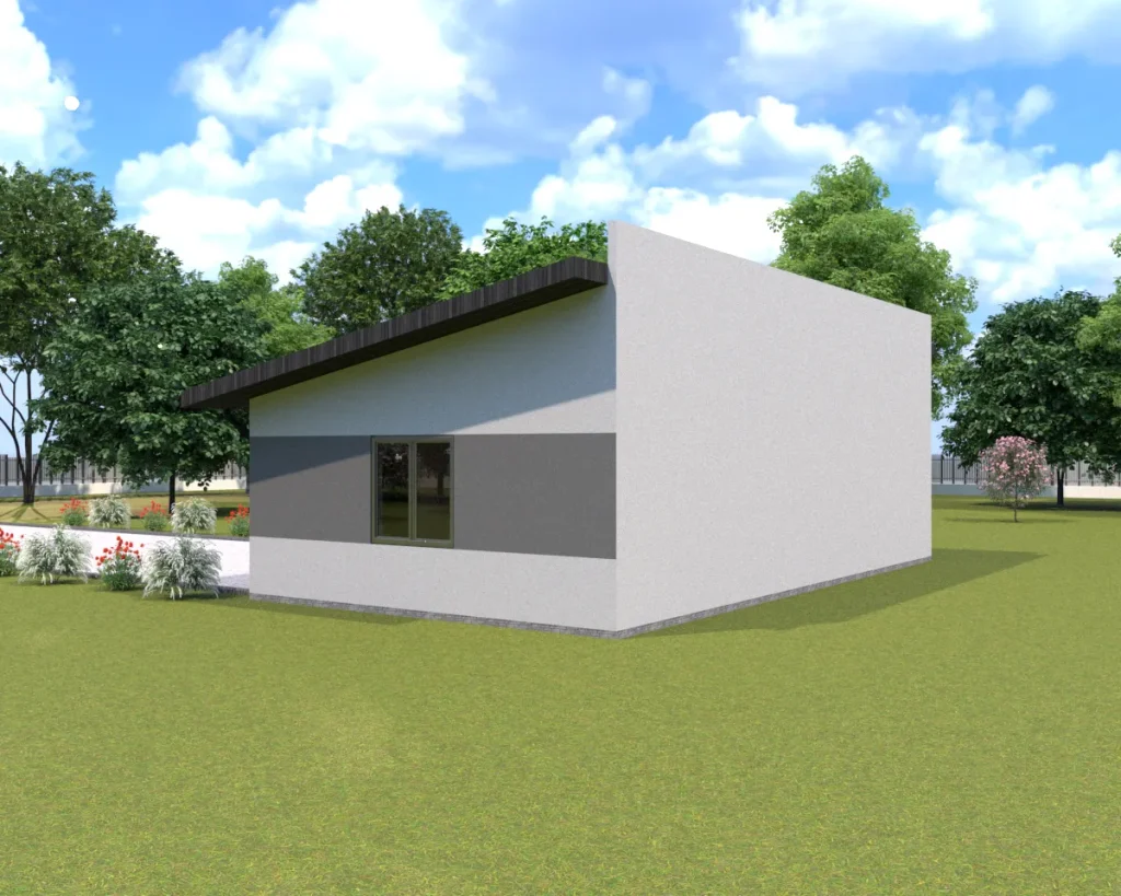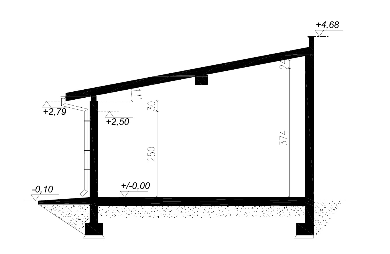 - Dach: jednospadowy o kącie nachylenia 11°
