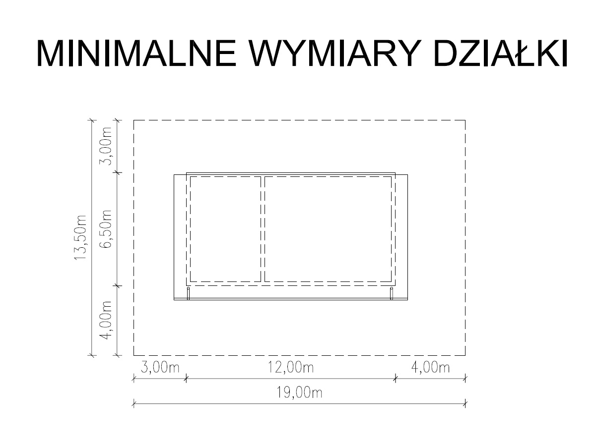 - Minimalne wymiary działki19,00x13,50 m