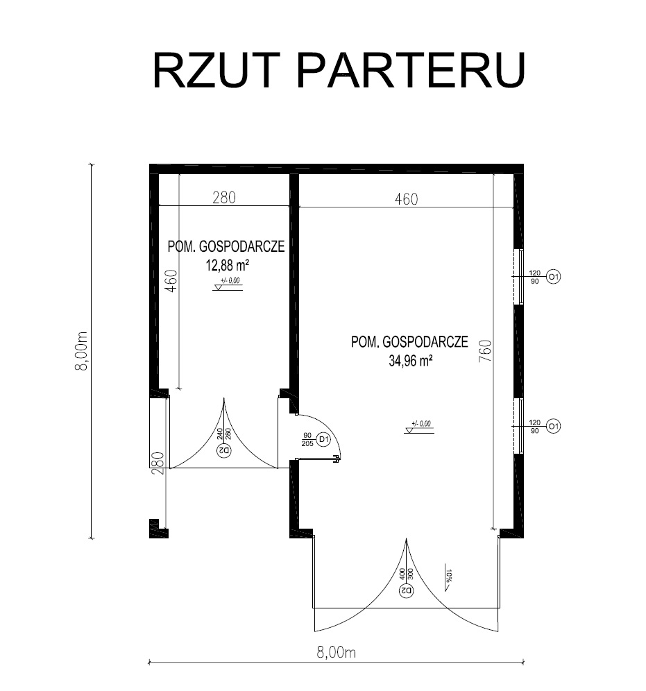 - Dach: dwuspadowy o kącie nachylenia 35°
