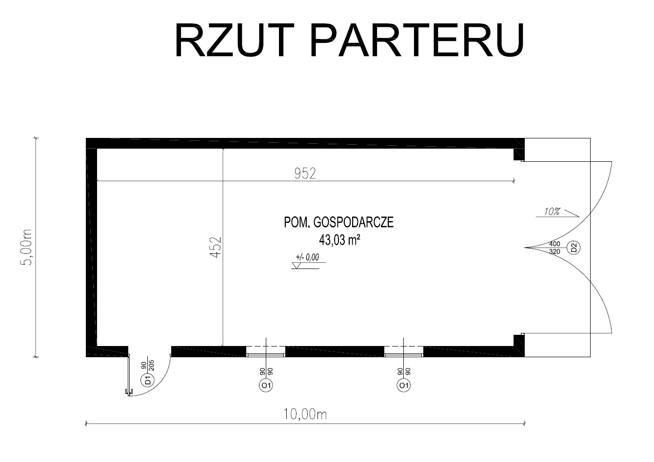 - Dach: dwuspadowy o kącie nachylenia 25°