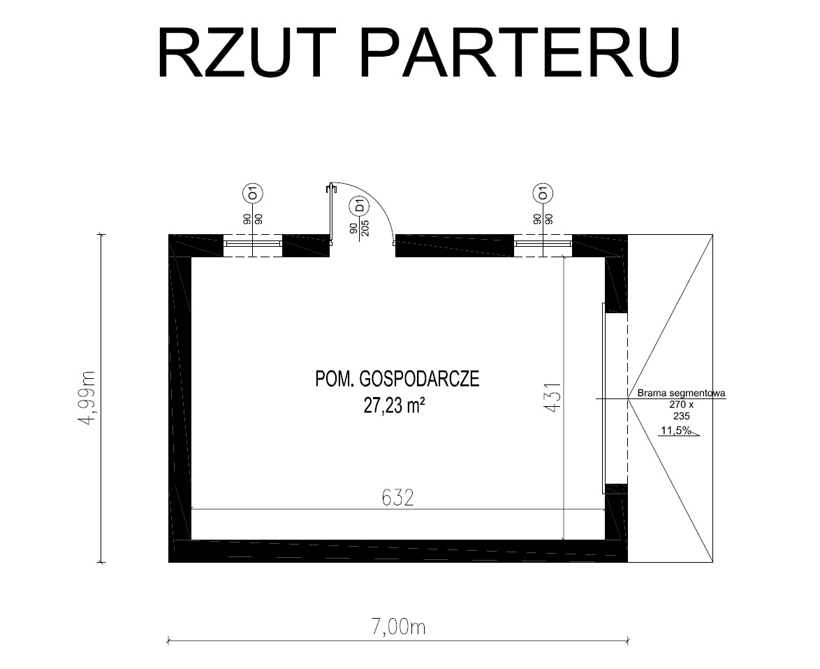 - Dach: dwuspadowy o kącie nachylenia 35°