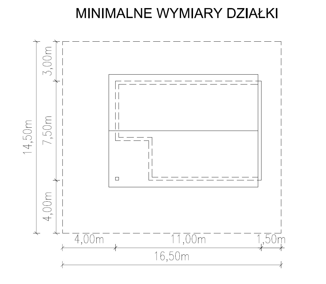 - Minimalne wymiary działki16,50x14,50 m