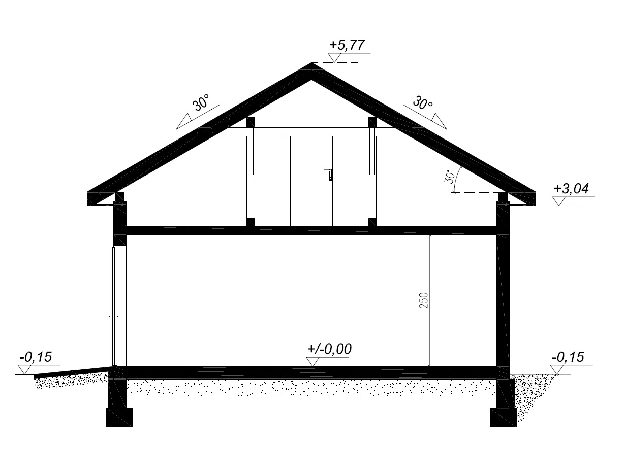 - Dach: dwuspadowy o kącie nachylenia 30°