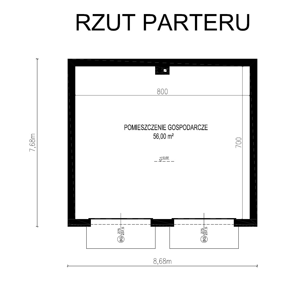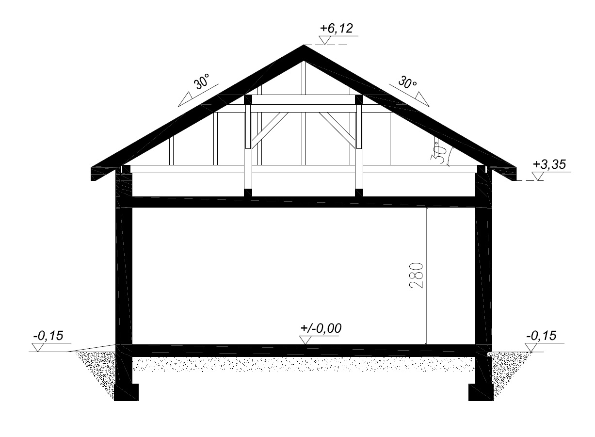 - Dach: dwuspadowy o kącie nachylenia 30°