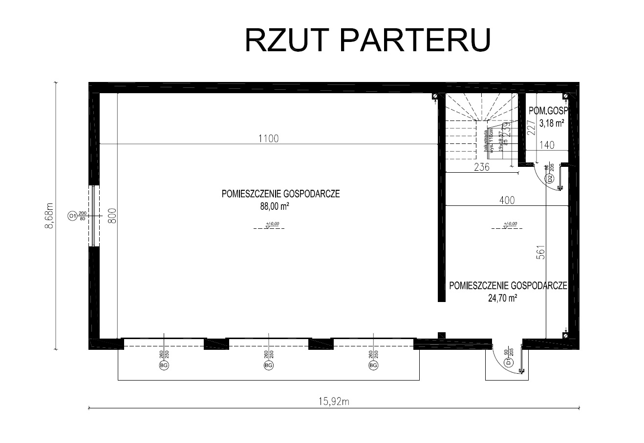 - Dach: dwuspadowy o kącie nachylenia 35°