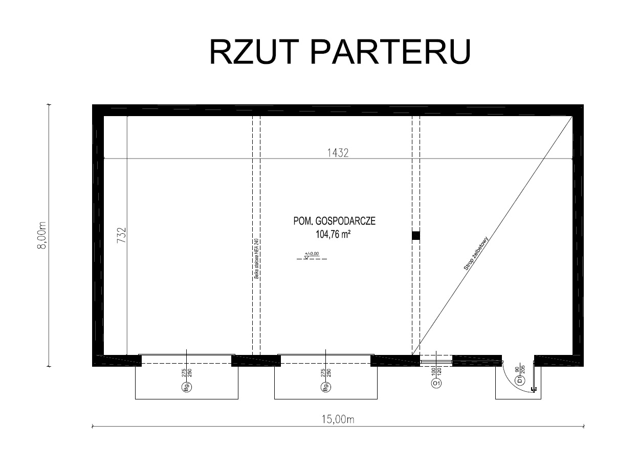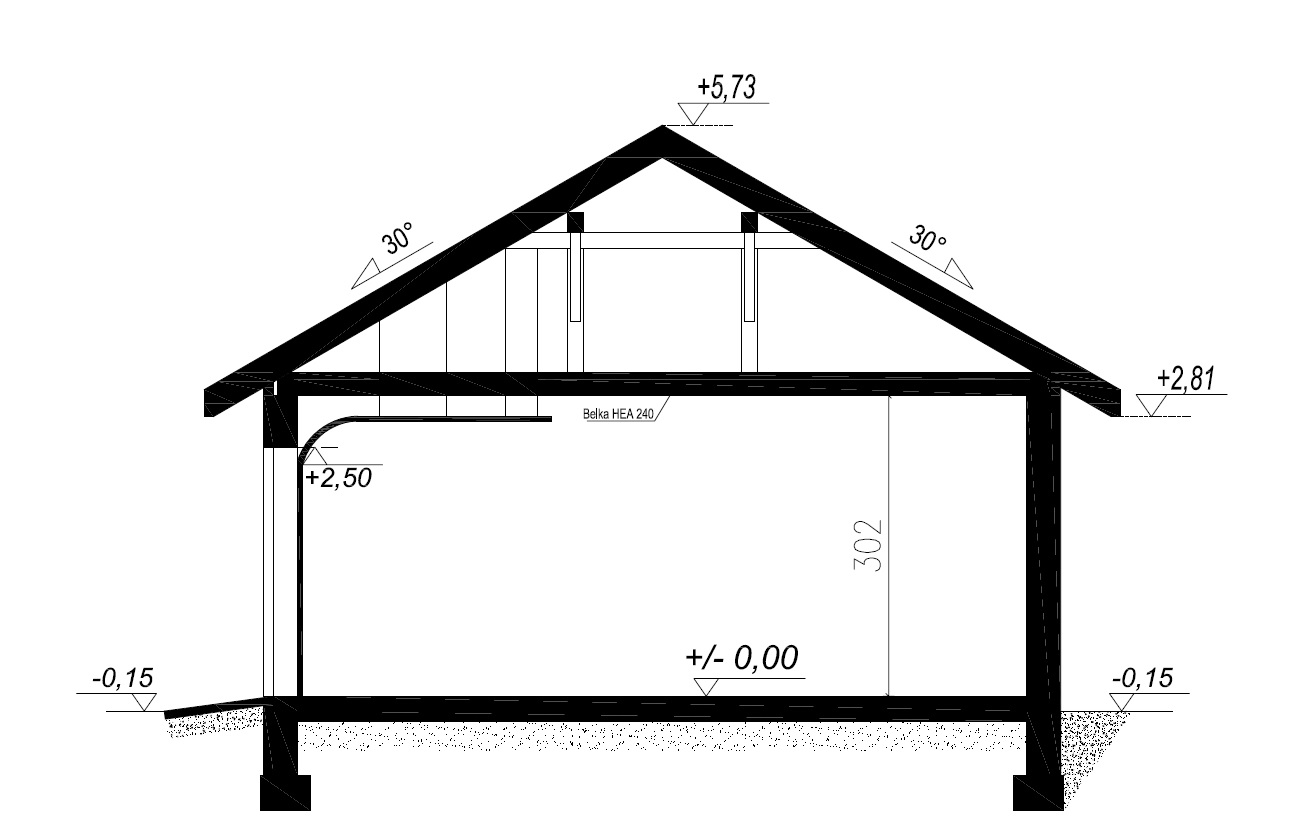 - Dach: dwuspadowy o kącie nachylenia 30°