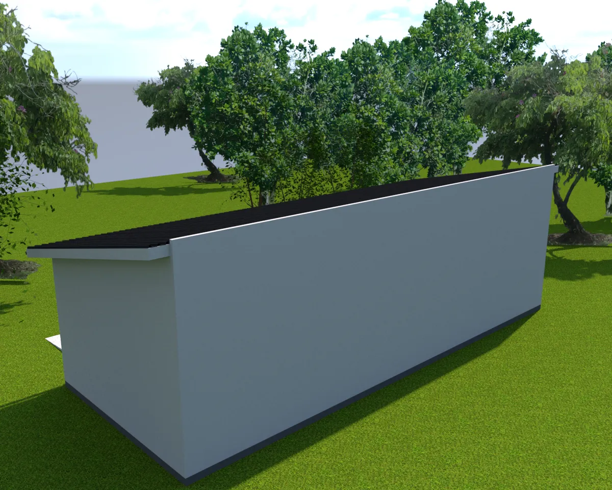 - Dach: jednospadowy o kącie nachylenia 8°
