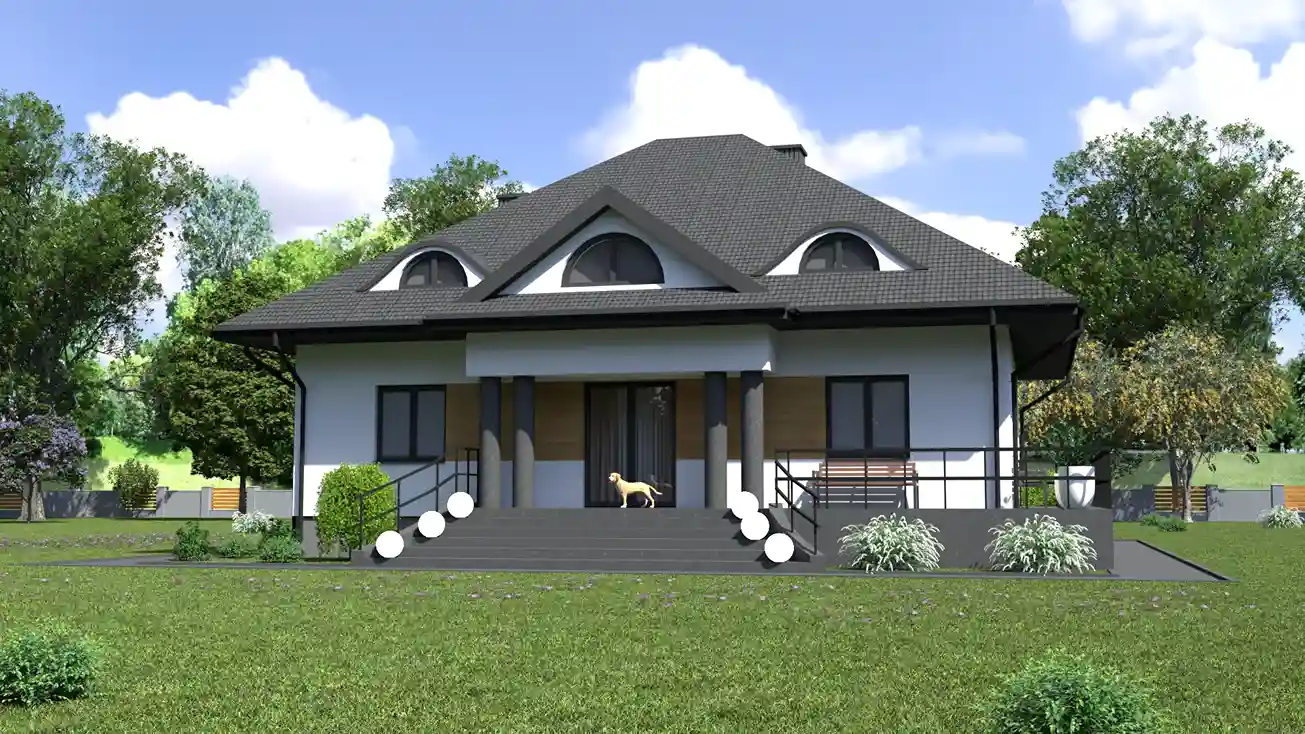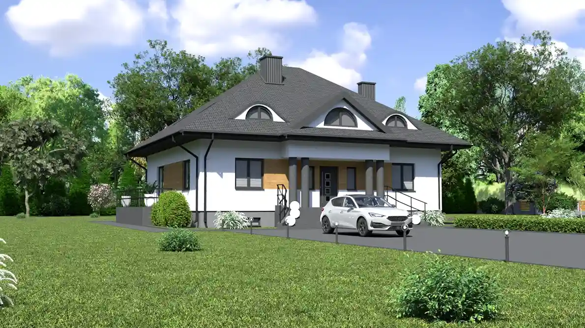 - Dach: wielospadowy o kącie nachylenia 35°