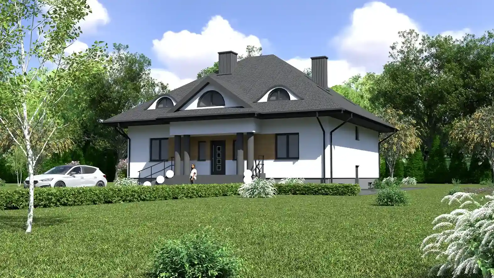 - Pokrycie dachu: blachodachówka