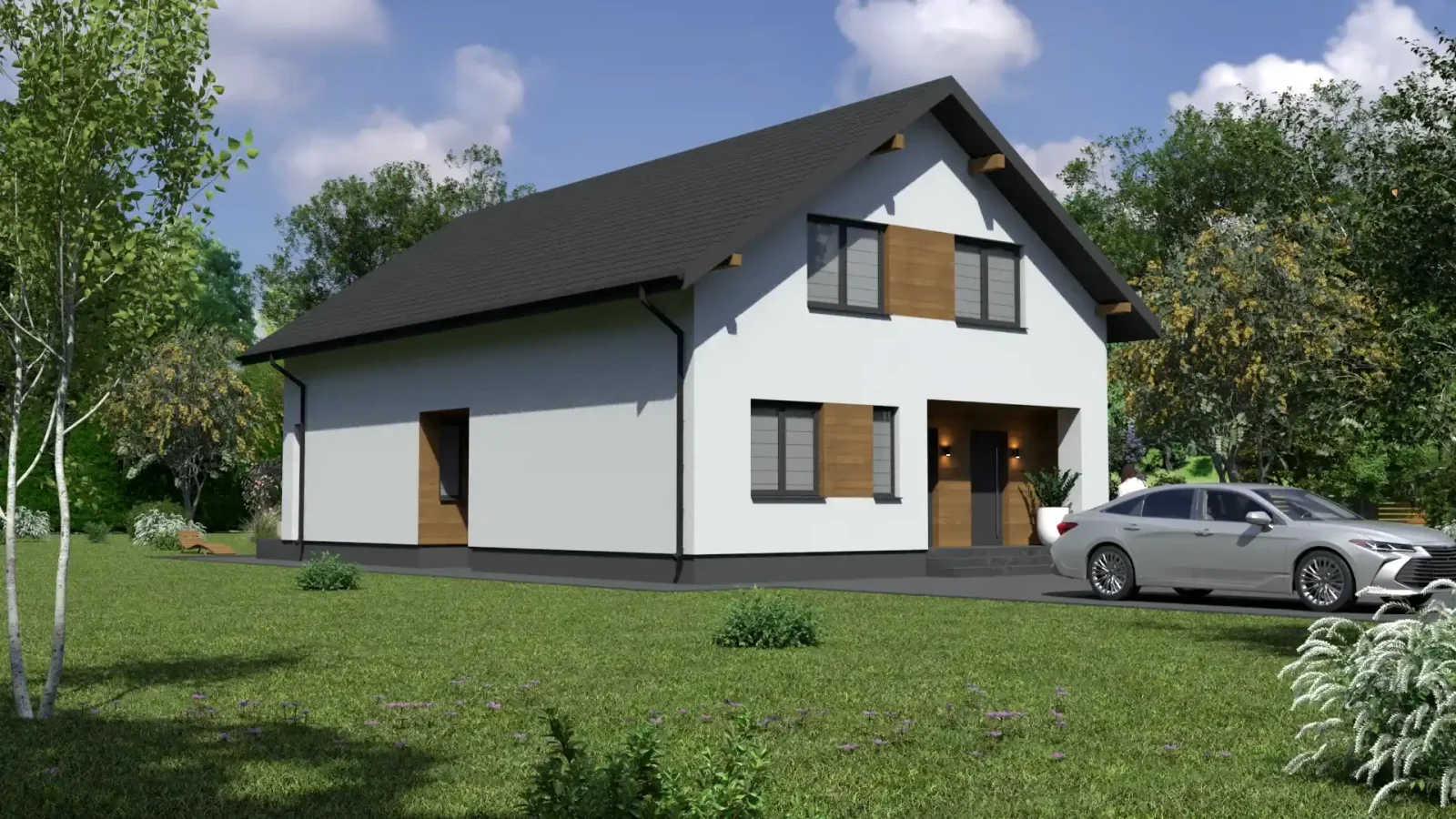 - Pokrycie dachu: blachodachówka
