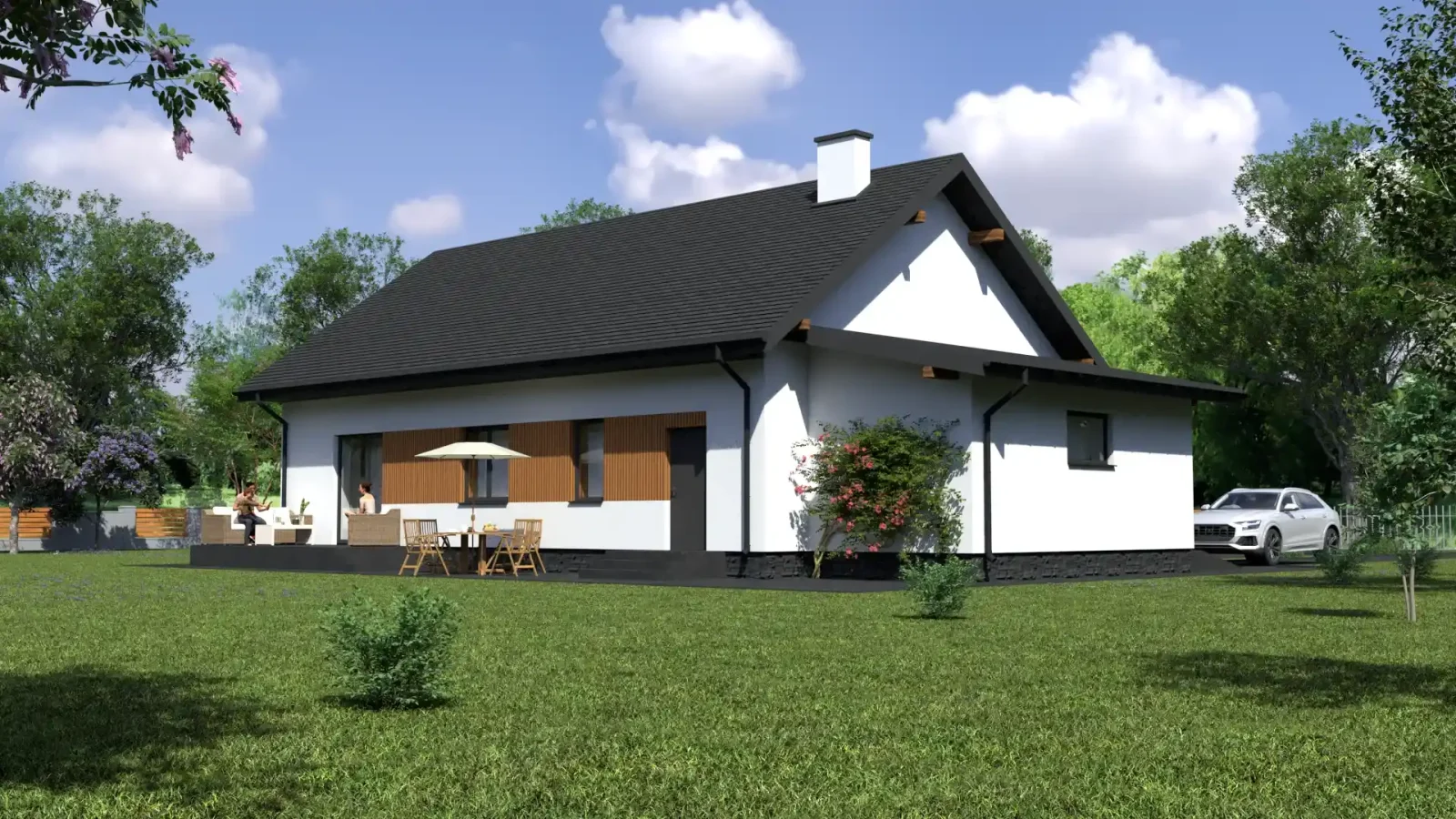- Pokrycie dachu: blachodachówka