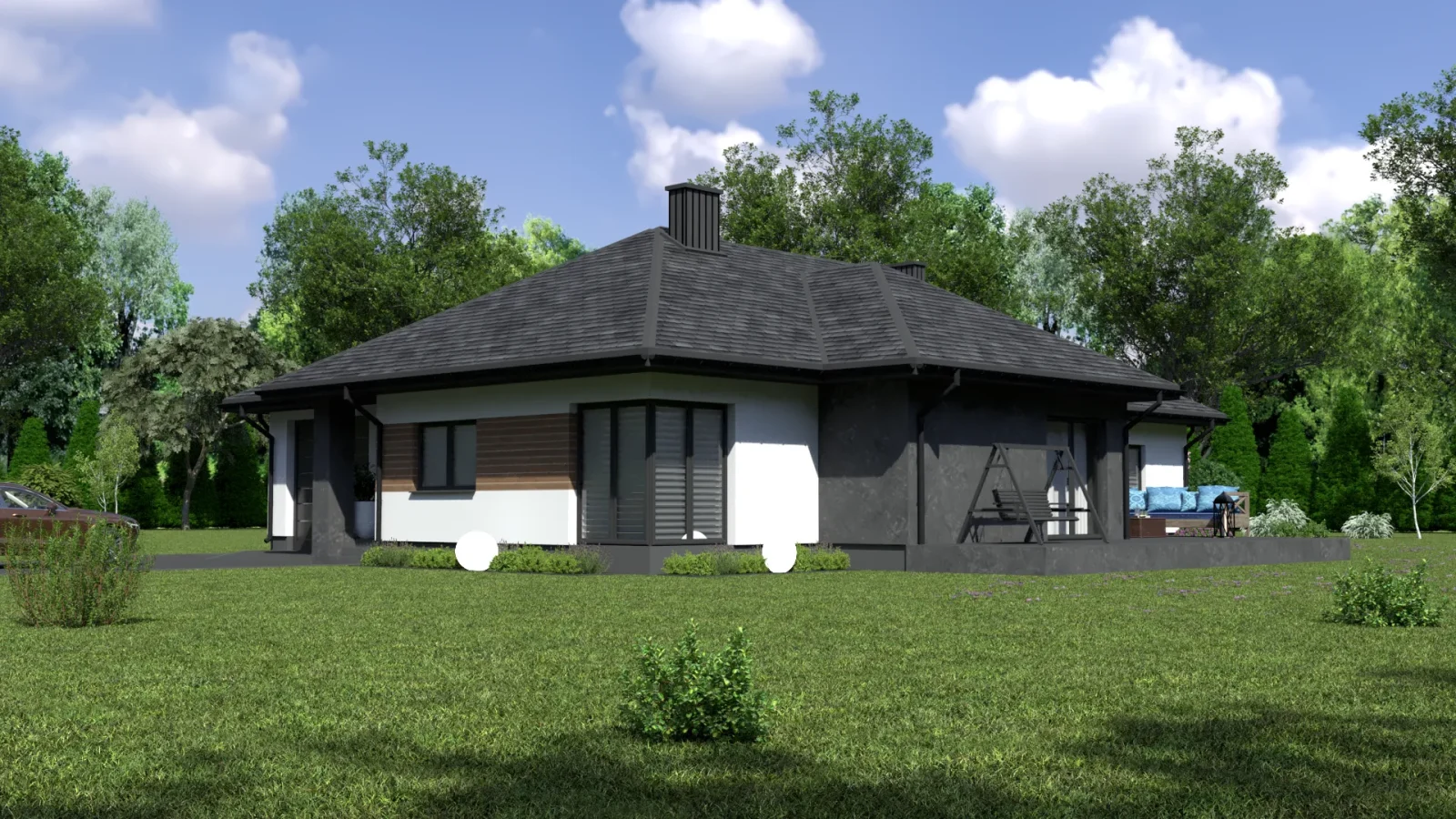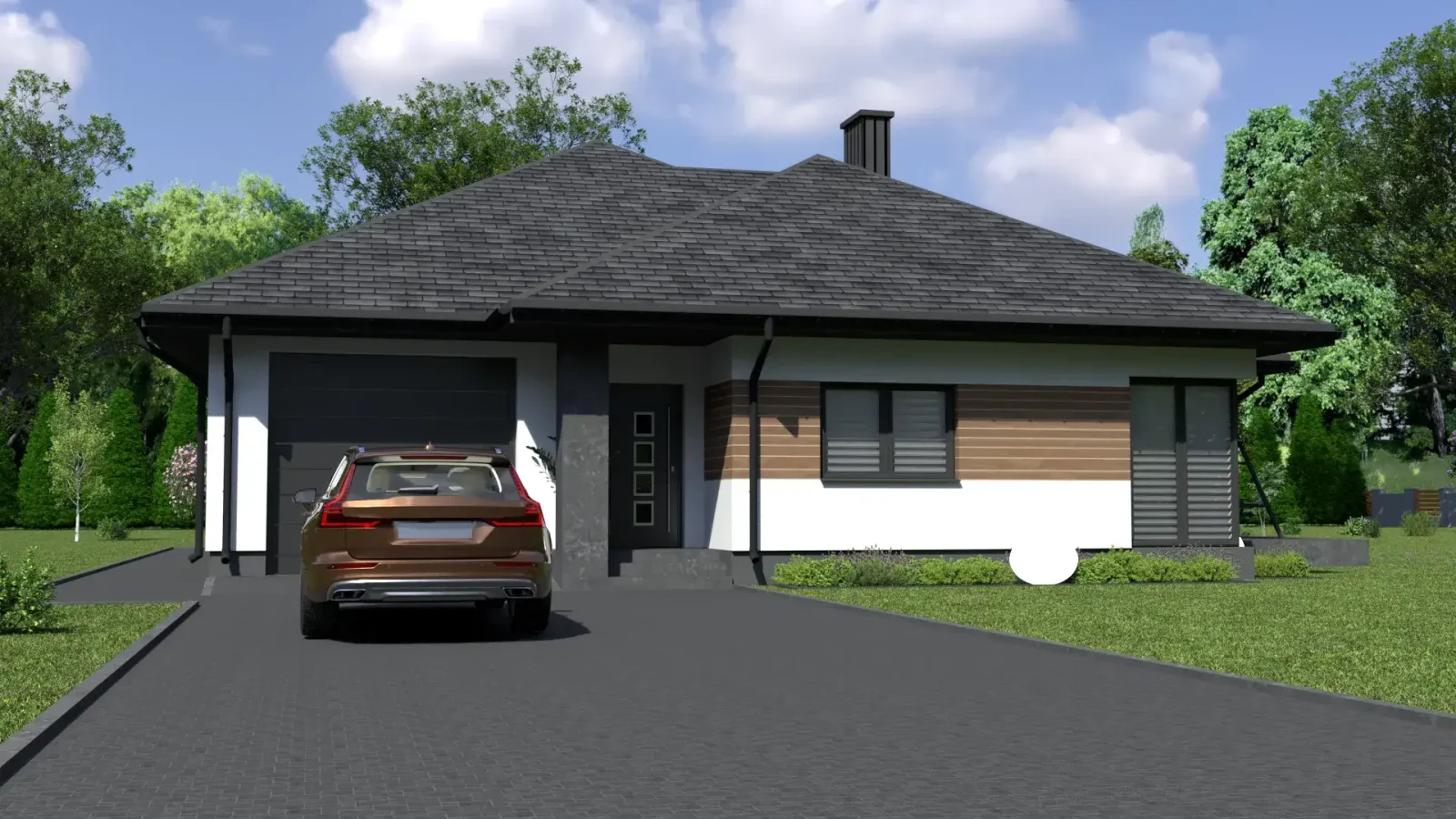 - Pokrycie dachu: blachodachówka