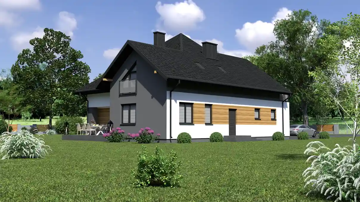 - Dach: wielospadowy o kącie nachylenia 37 °