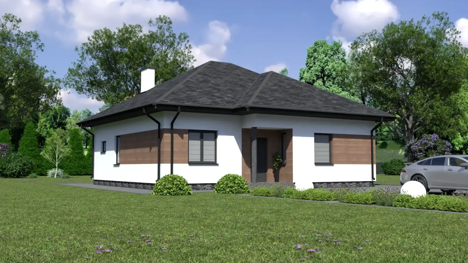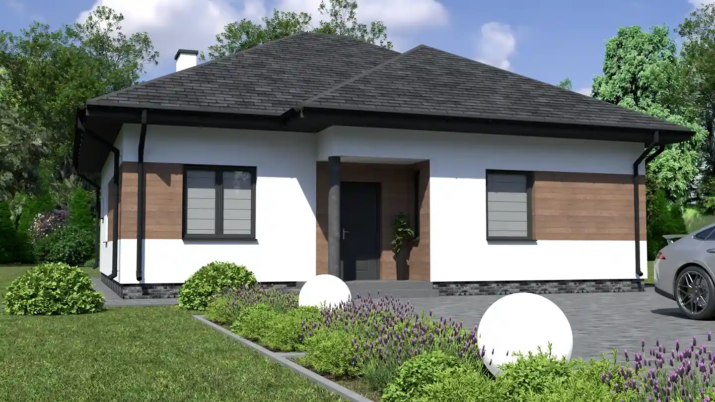 - Dach: wielospadowy o kącie nachylenia 30°