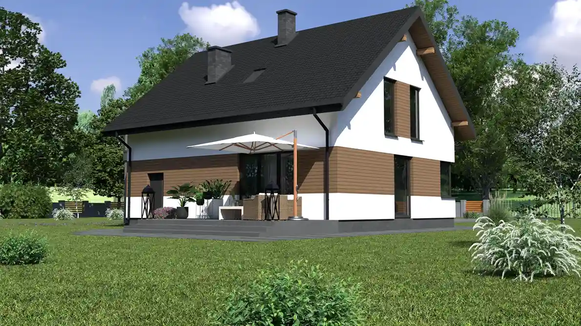 - Dach: dwuspadowy o kącie nachylenia 39°