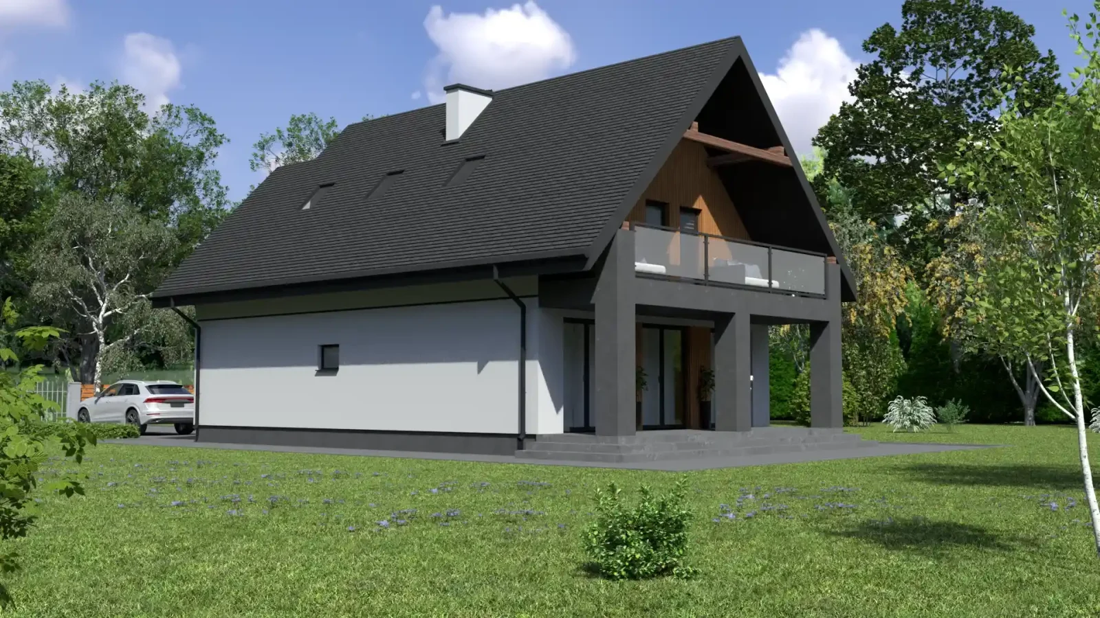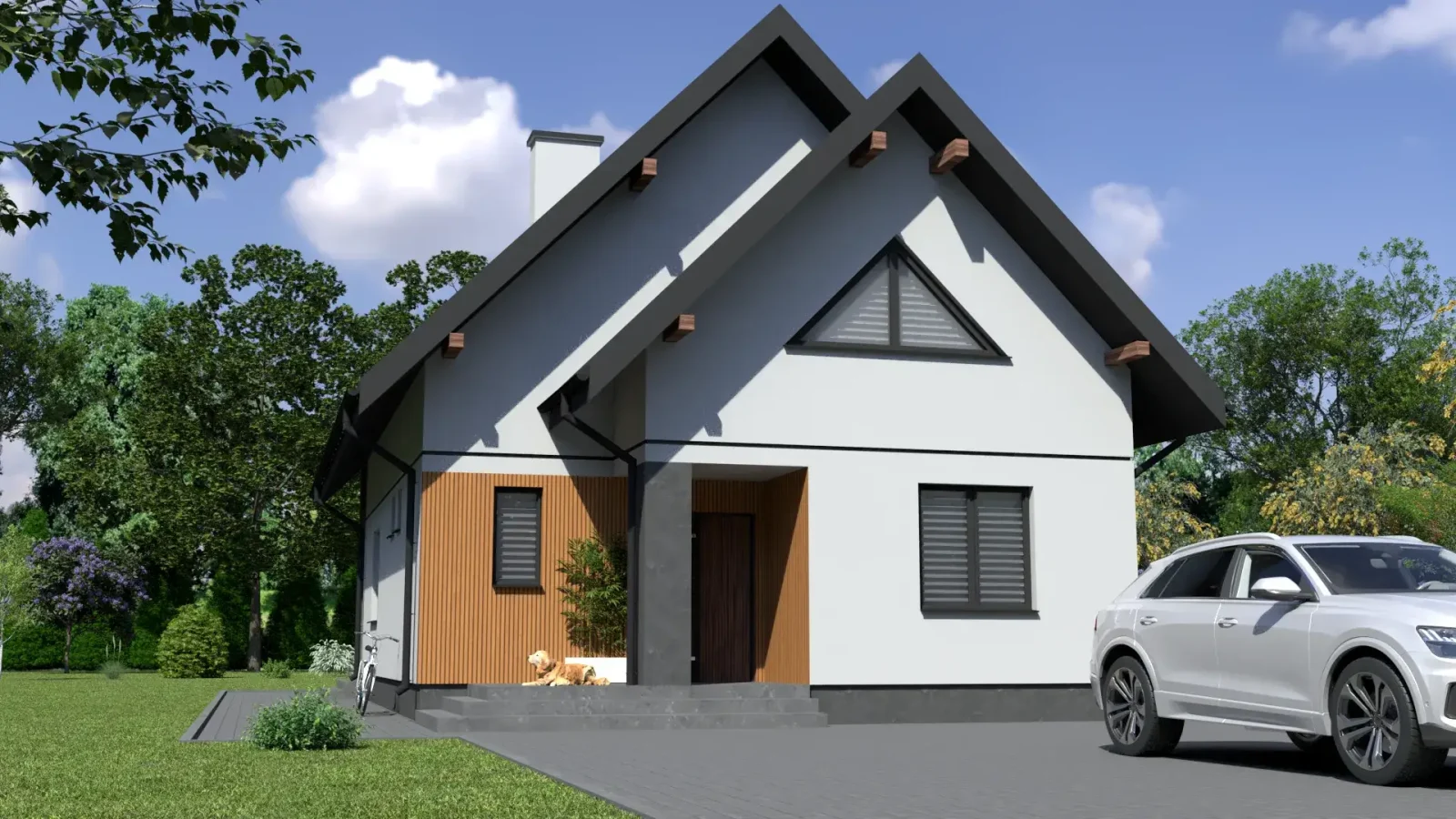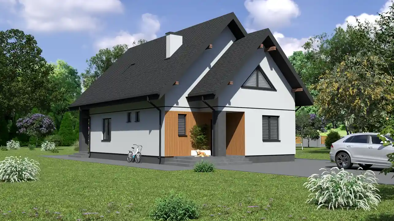 - Pokrycie dachu: blachodachówka