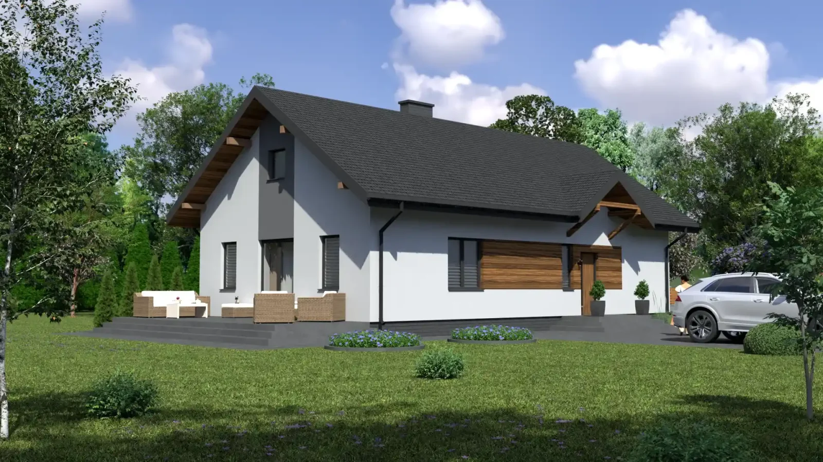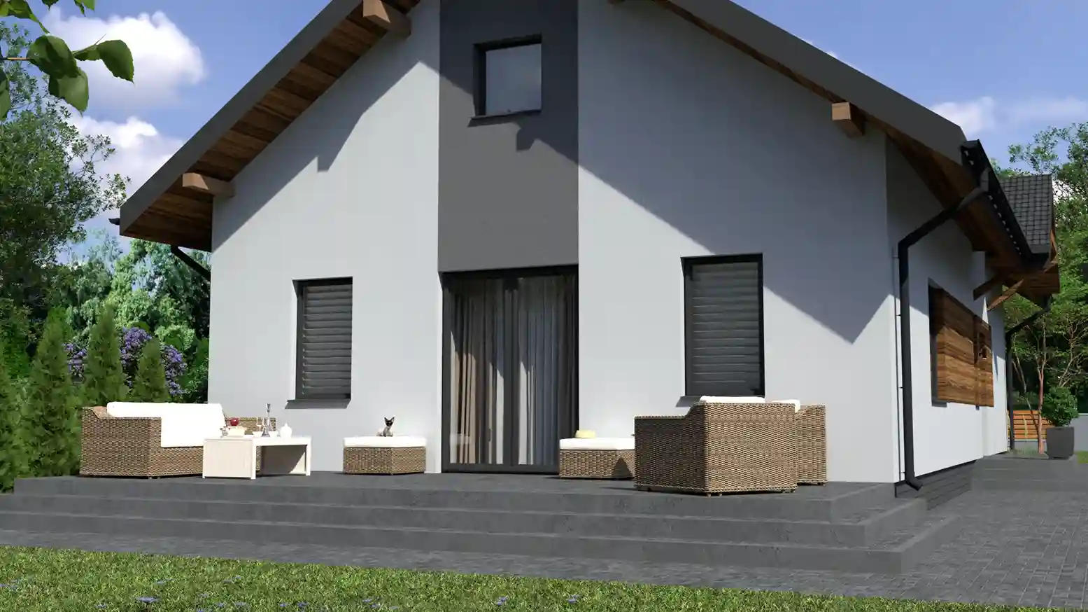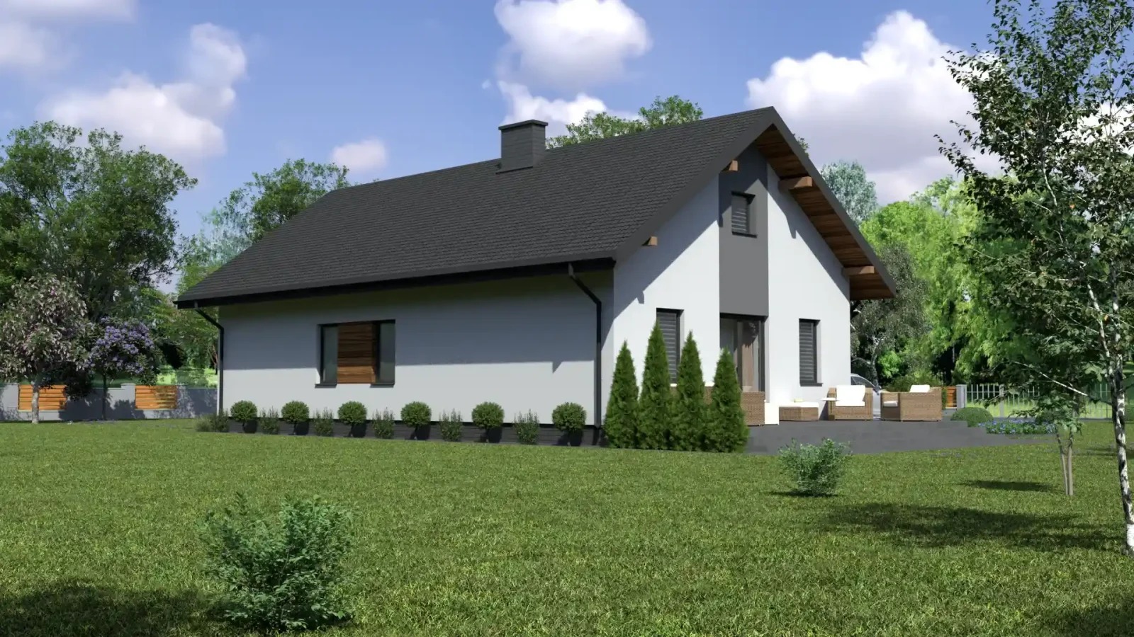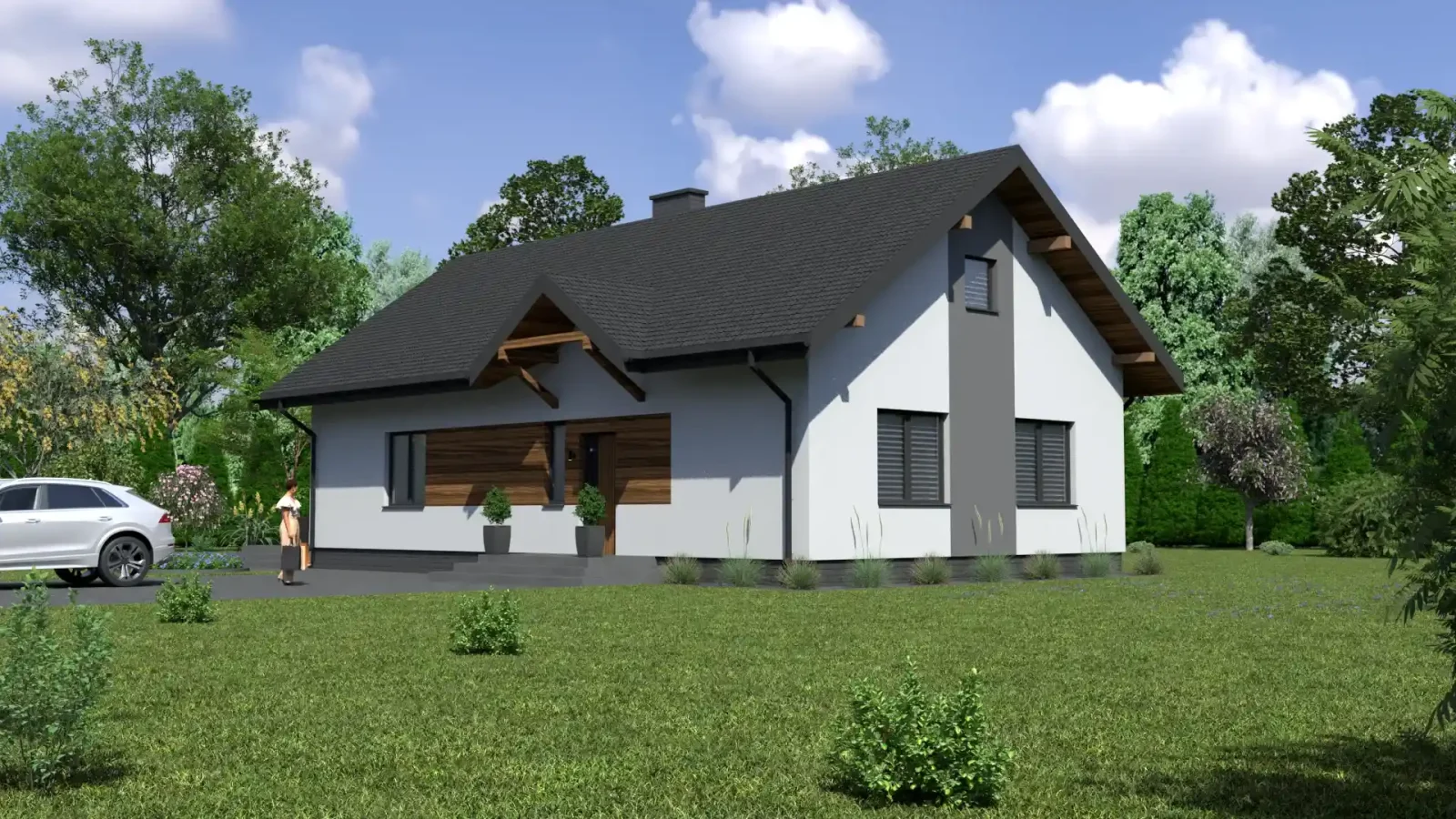 - Pokrycie dachu: blachodachówka