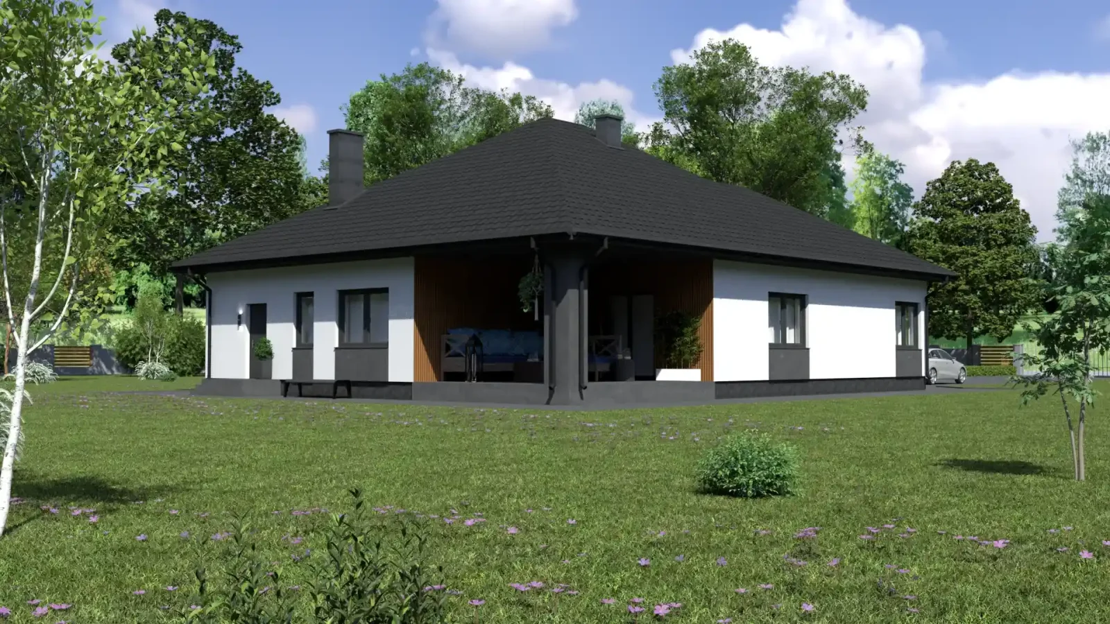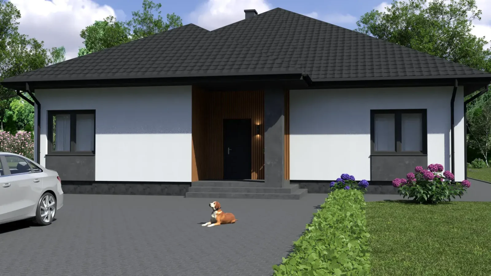 - Pokrycie dachu: blachodachówka