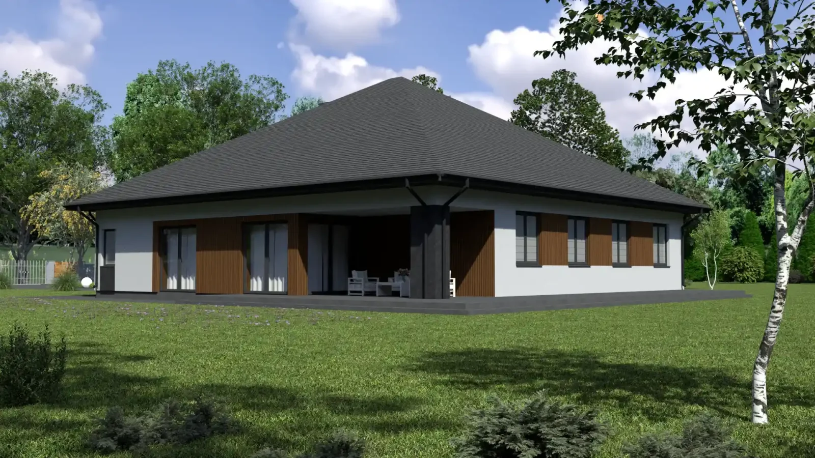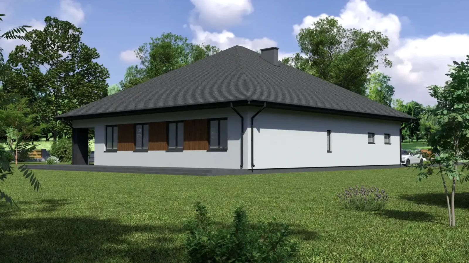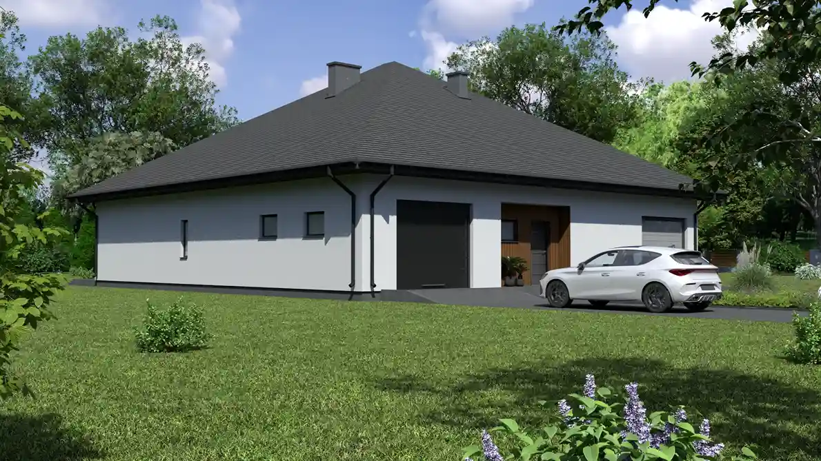 - Dach: dwuspadowy o kącie nachylenia 30°