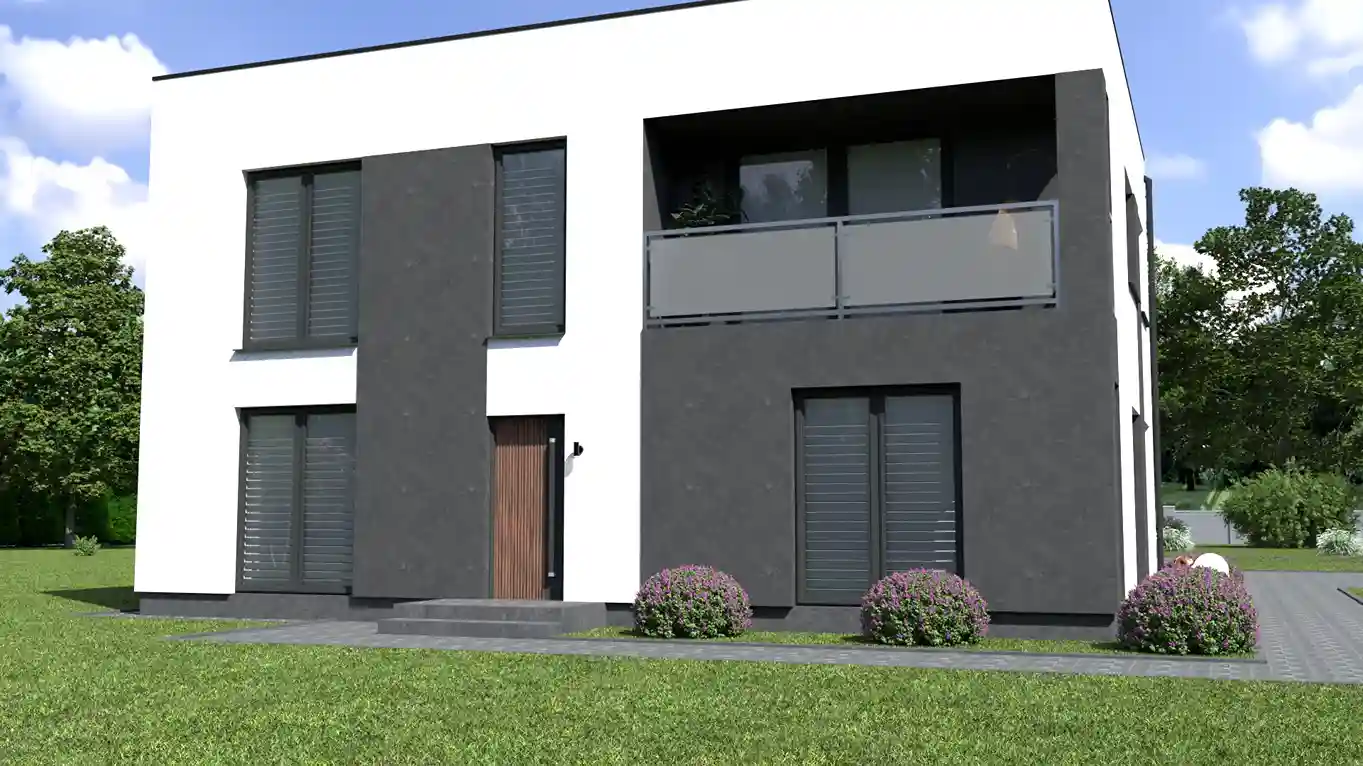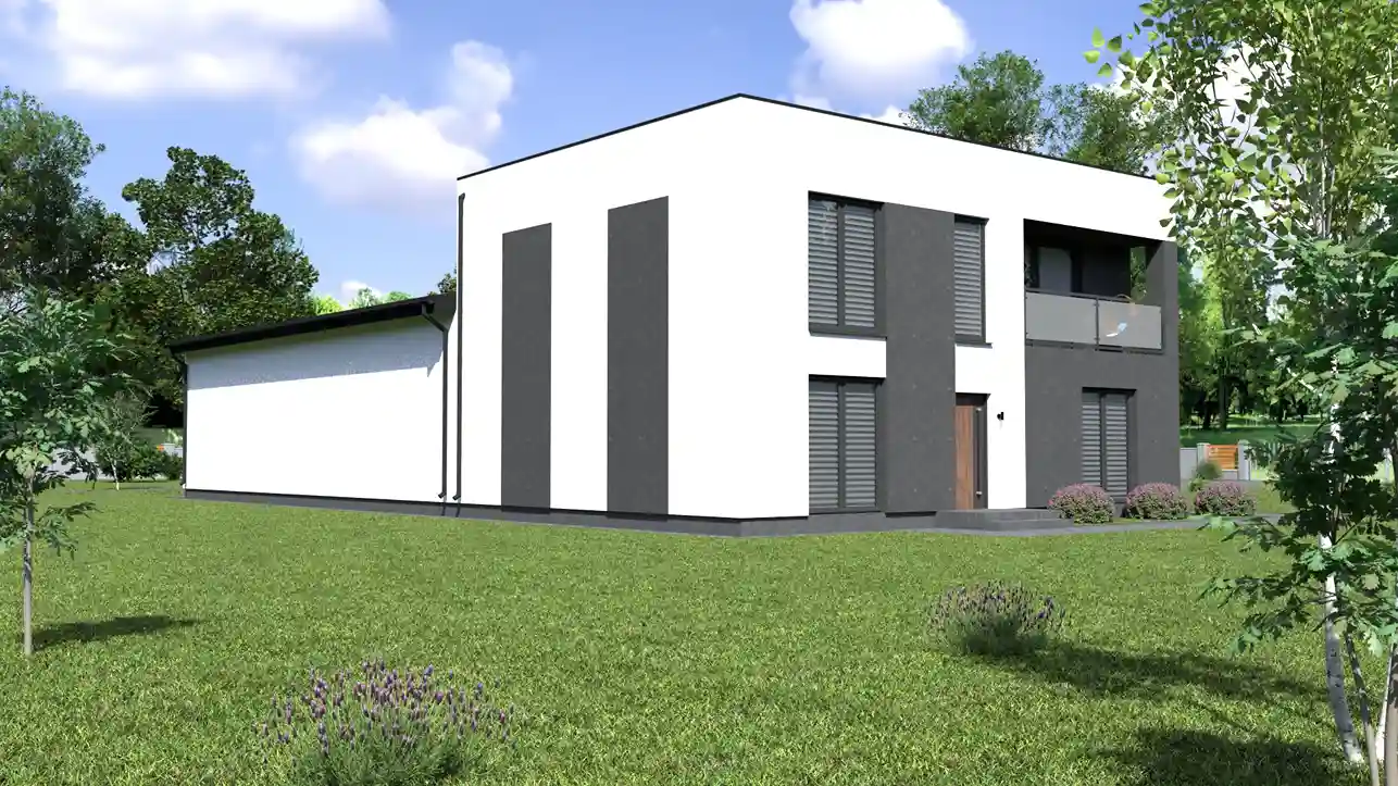 - Dach: płaski o kącie nachylenia 3 % i jednospadowy o kącie nachylenia 8°