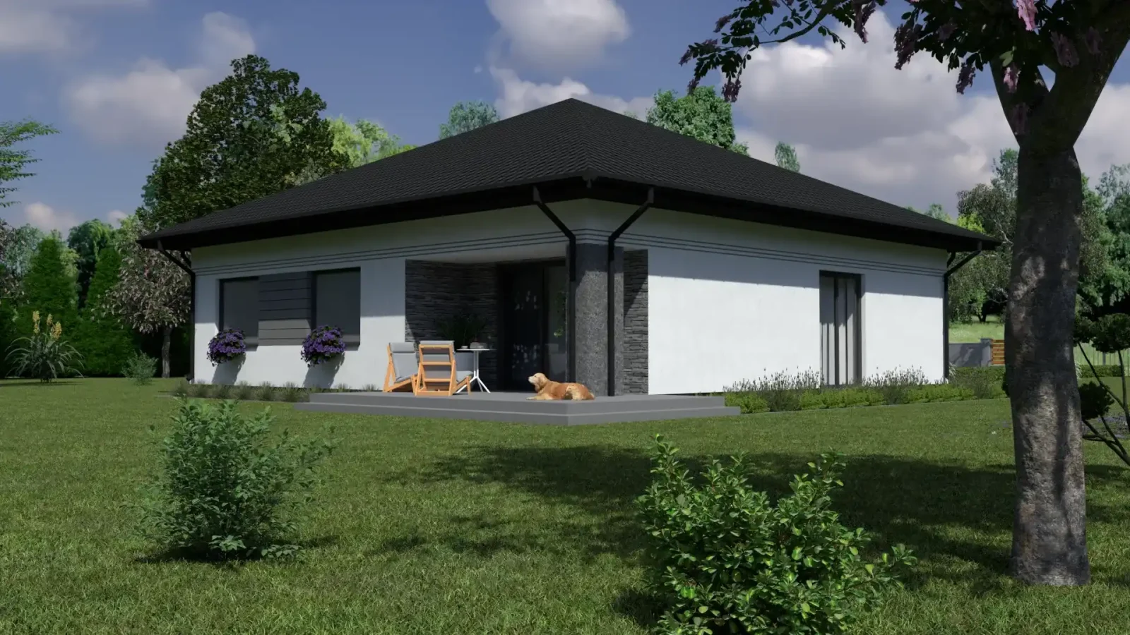 - Pokrycie dachu: dachówka ceramiczna