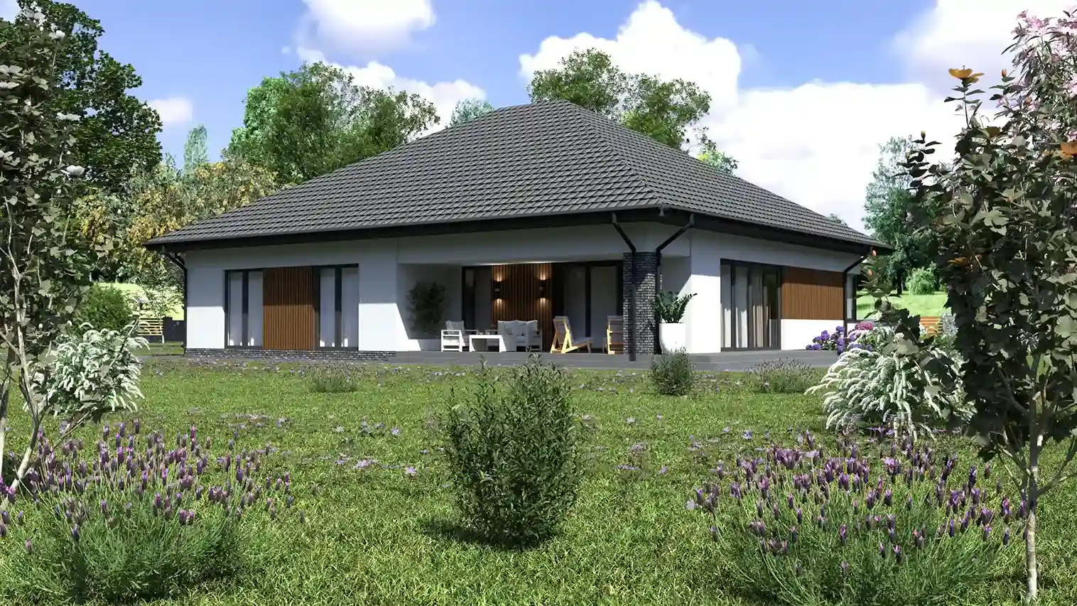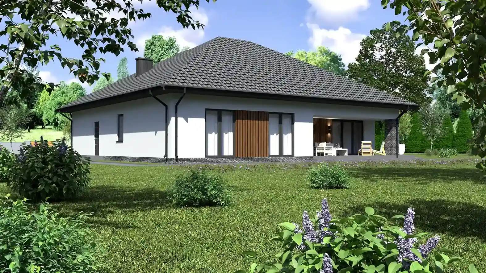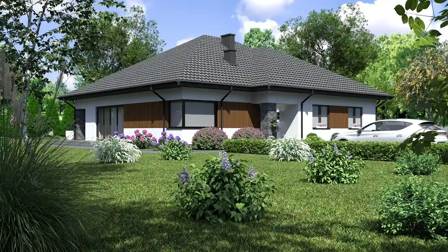 - Ściany zewnętrzne: pustak z betonu komórkowego 24 cm + wełna mineralna 12 cm + cegła ceramiczna 12 cm
