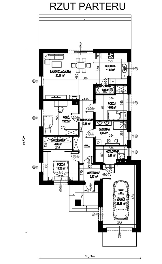 - Ogrzewanie na paliwa stałe lub instalacja gazowa w projekcie