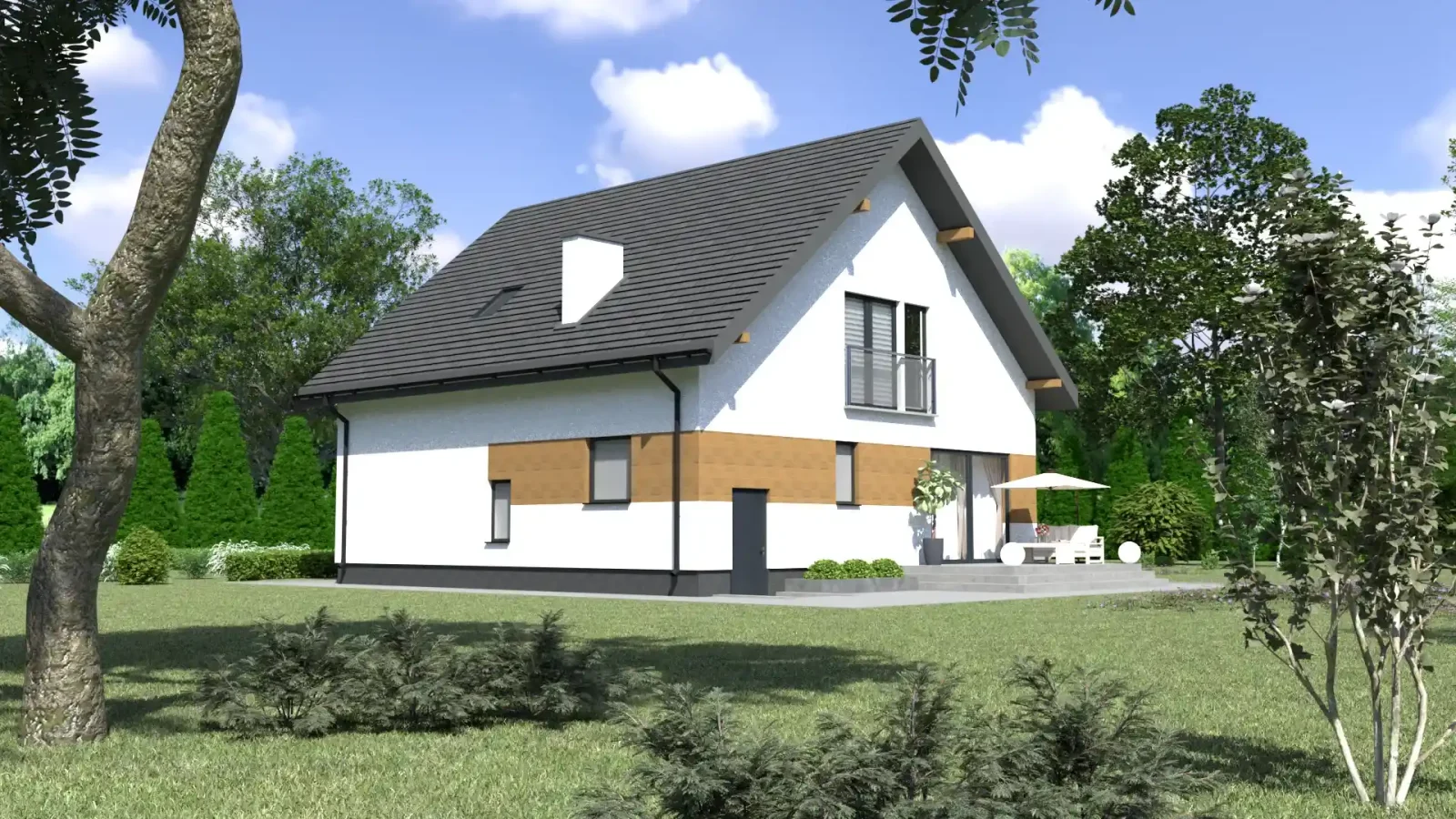 - Pokrycie dachu: blachodachówka
