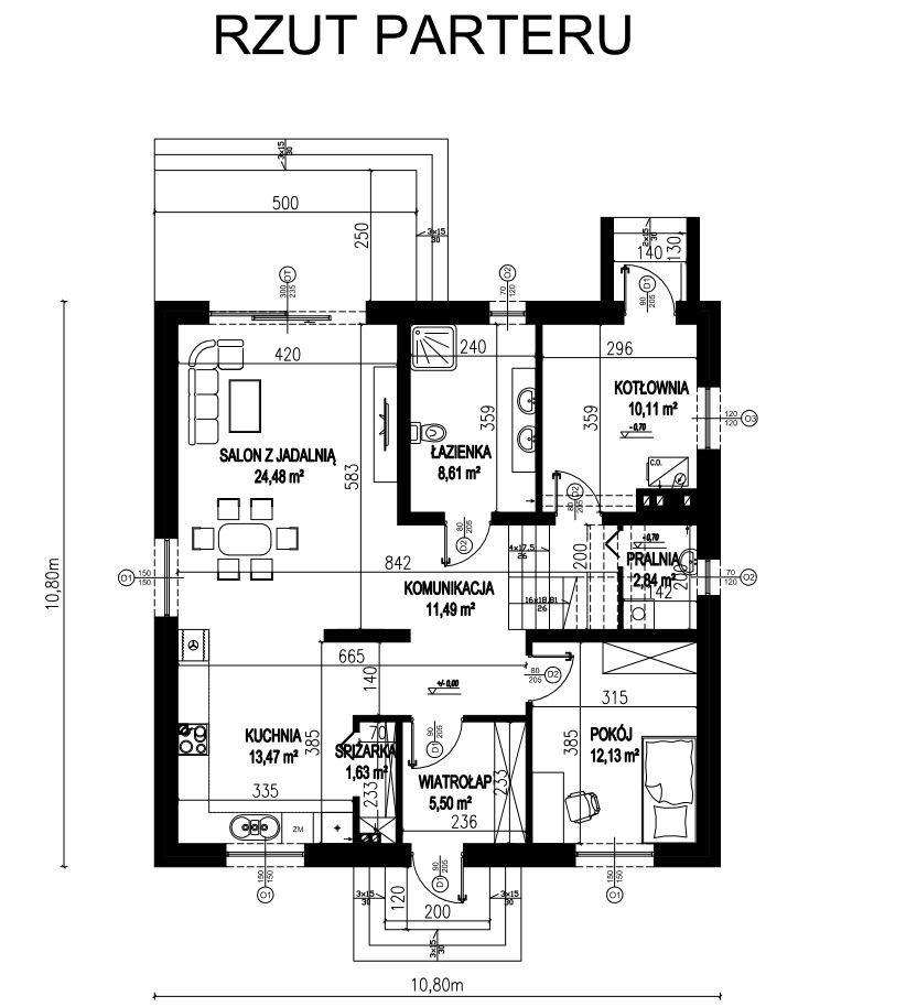 - Ogrzewanie na paliwa stałe lub instalacja gazowa w projekcie
