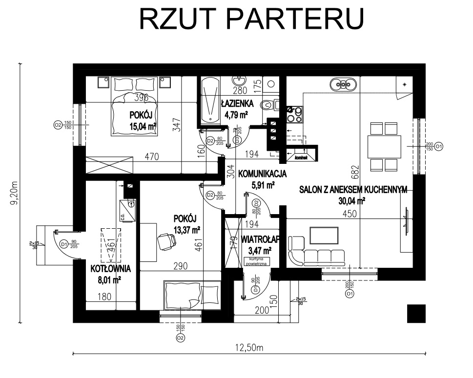 - Ogrzewanie na paliwa stałe lub instalacja gazowa w projekcie
