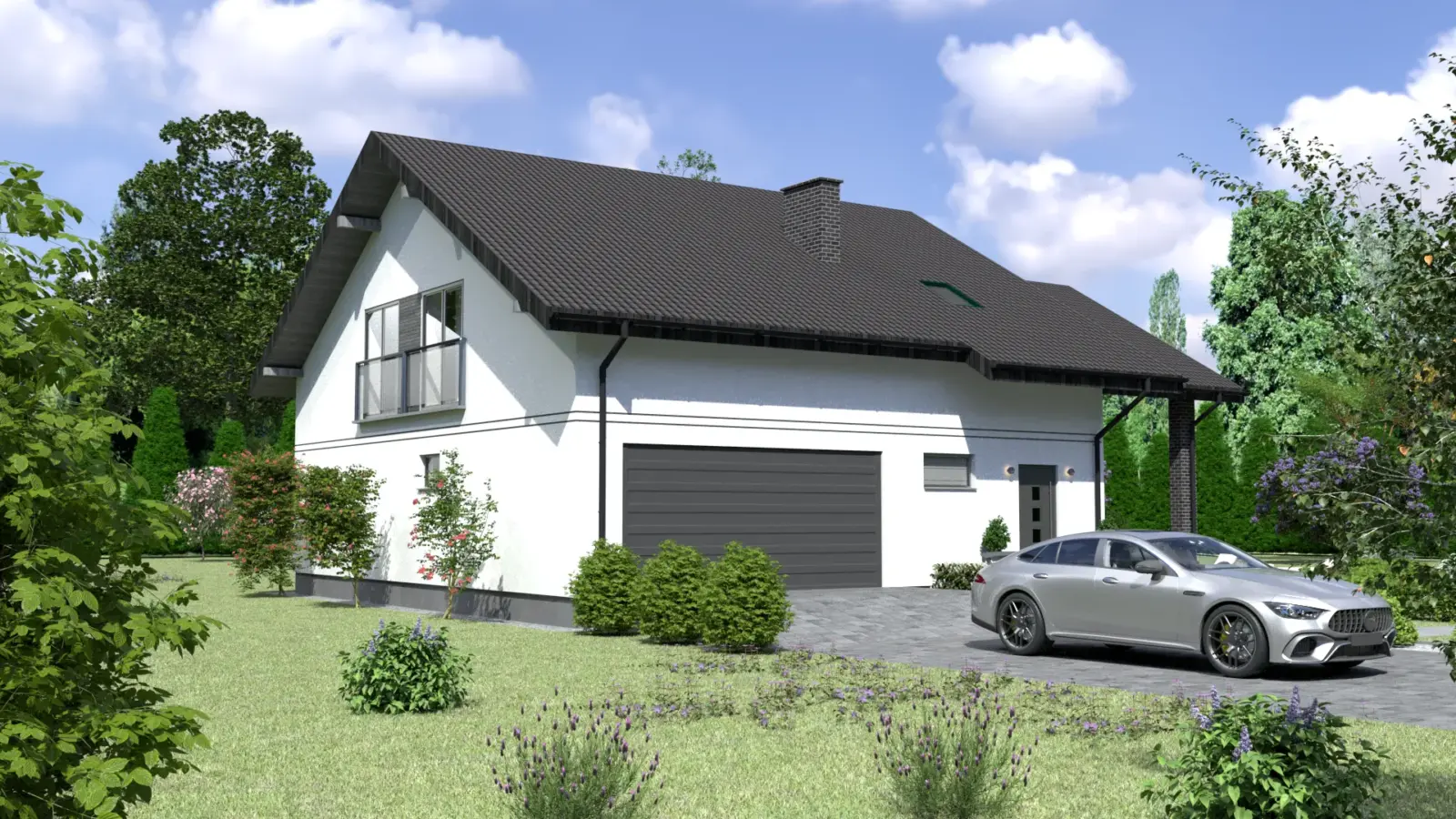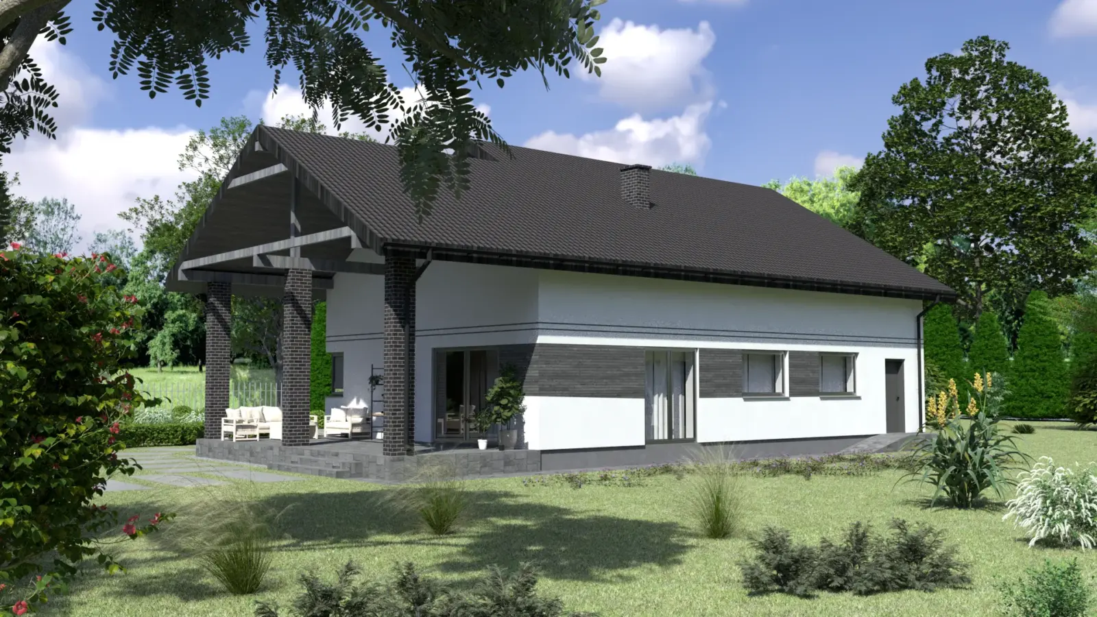 - Pokrycie dachu: blachodachówka