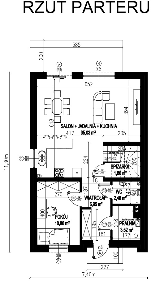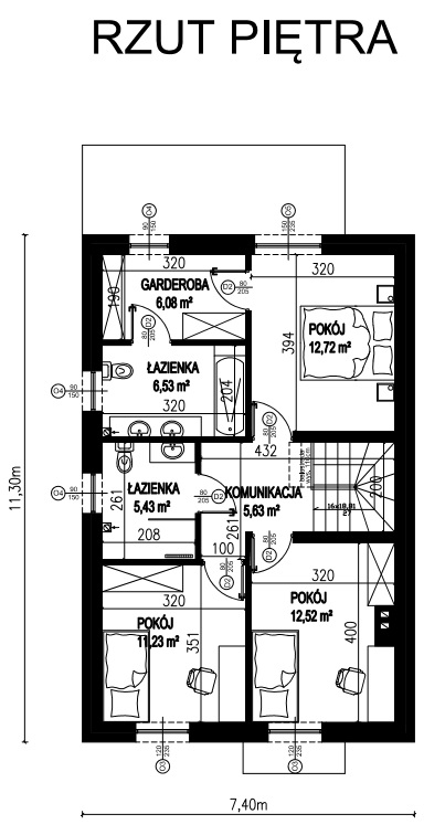 - Szerokość elewacji frontowej7.40 m