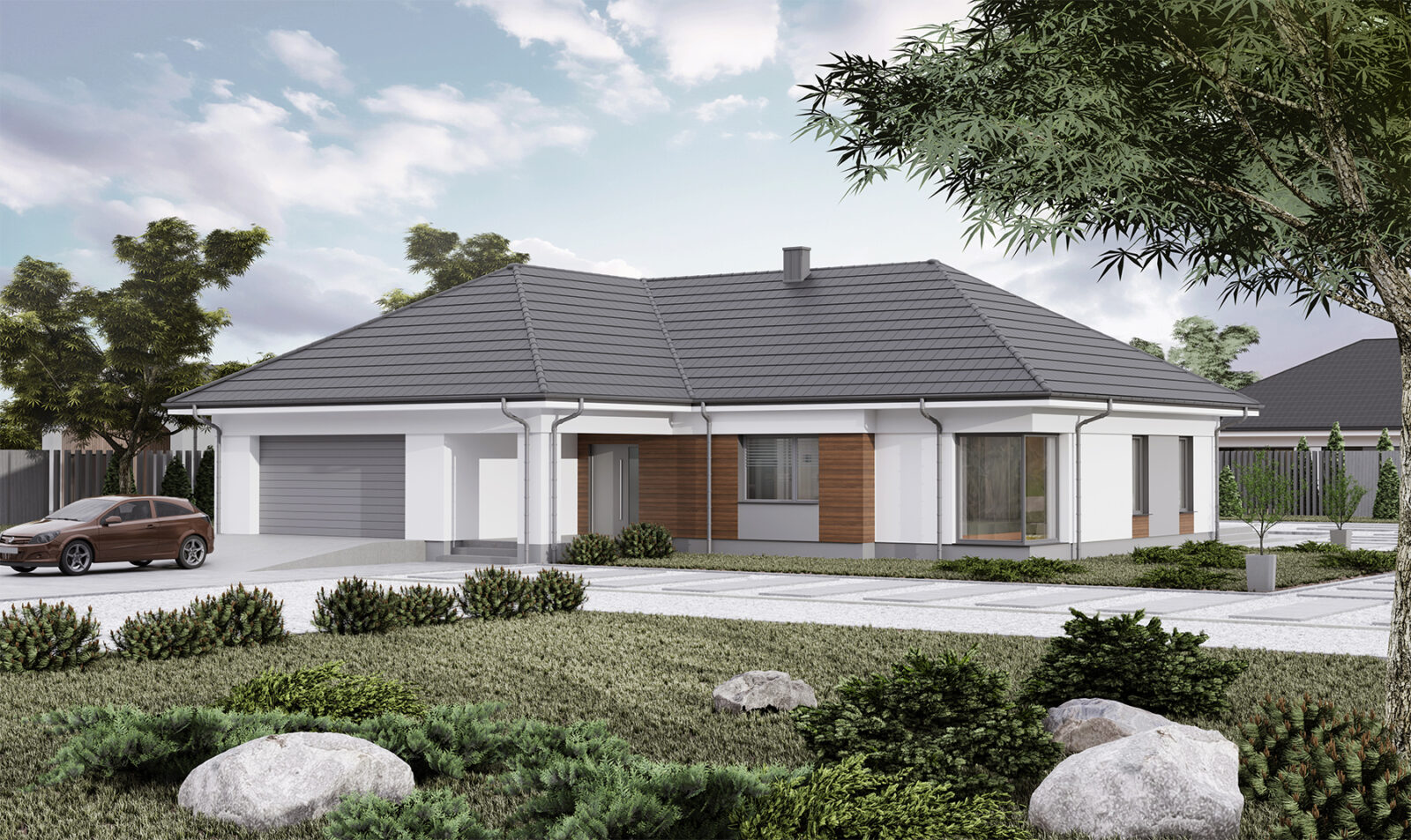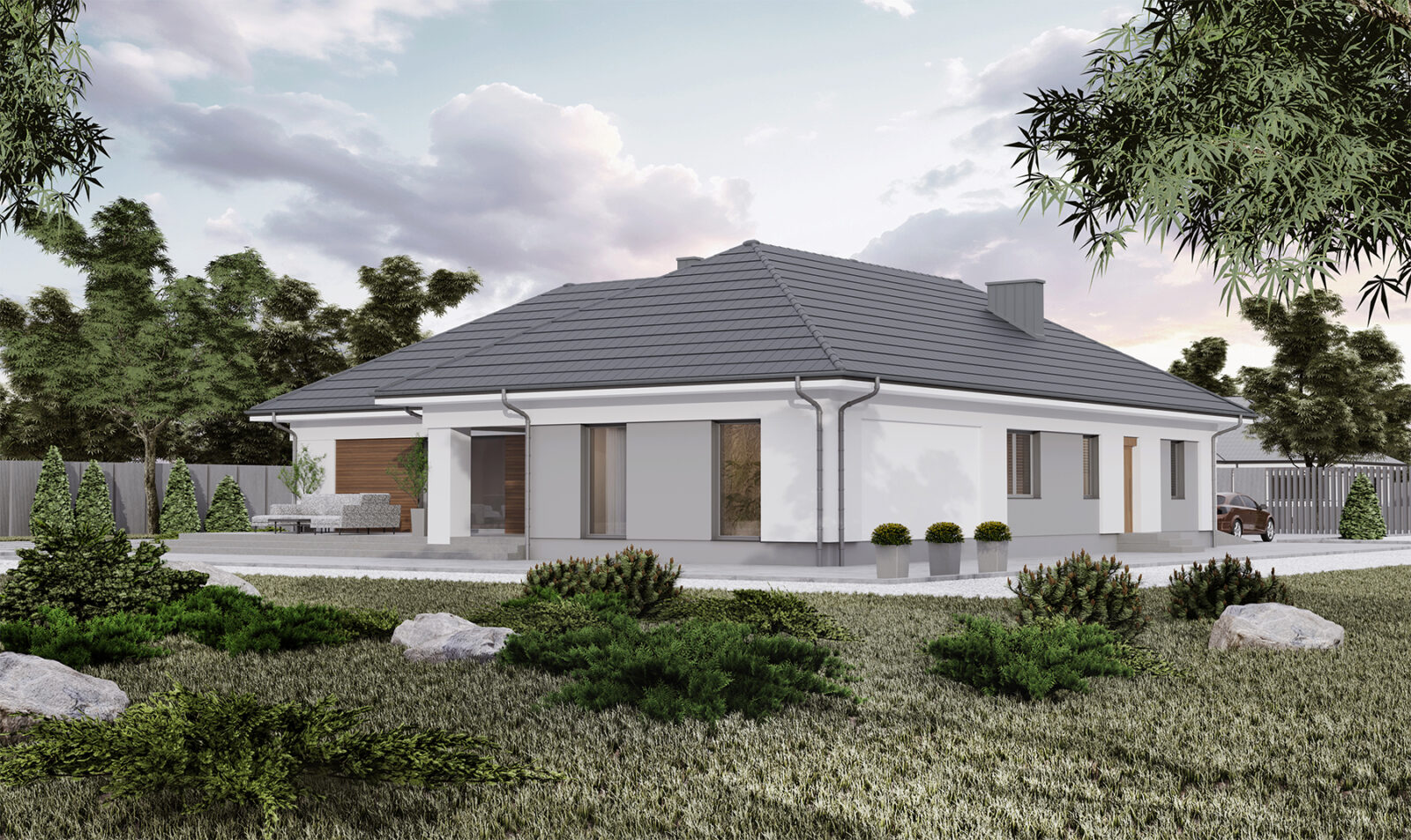 - Pokrycie dachu: blachodachówka