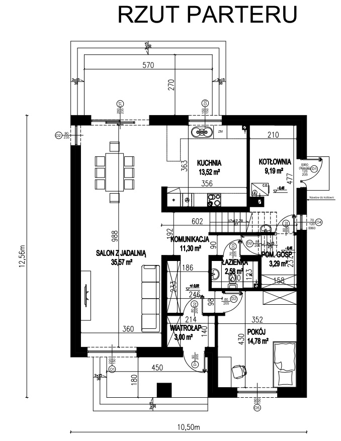 - Szerokość elewacji frontowej10.50 m
