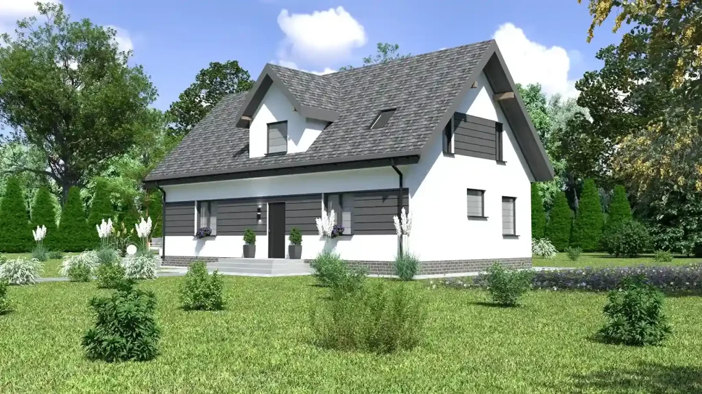 - Dach: dwuspadowy