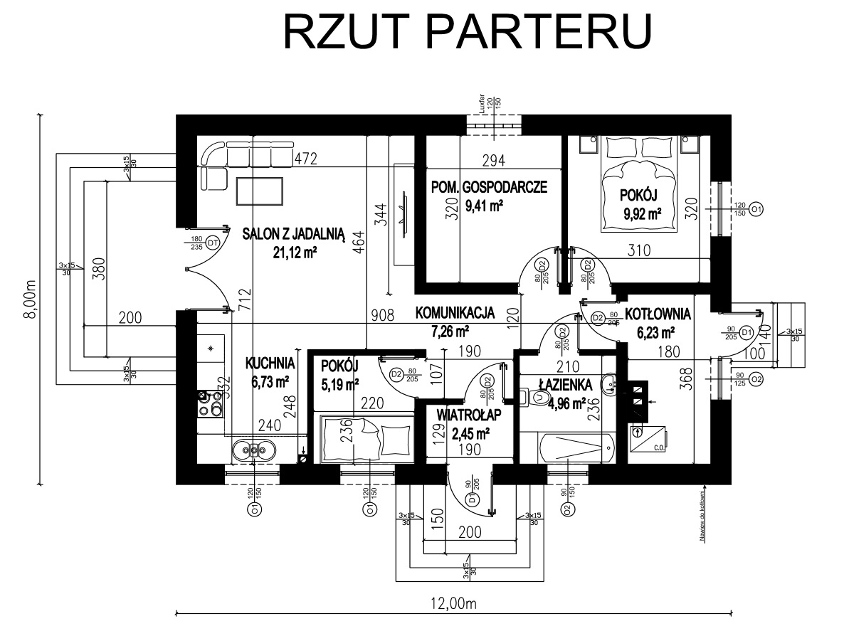 - Szerokość elewacji frontowej12.00 m