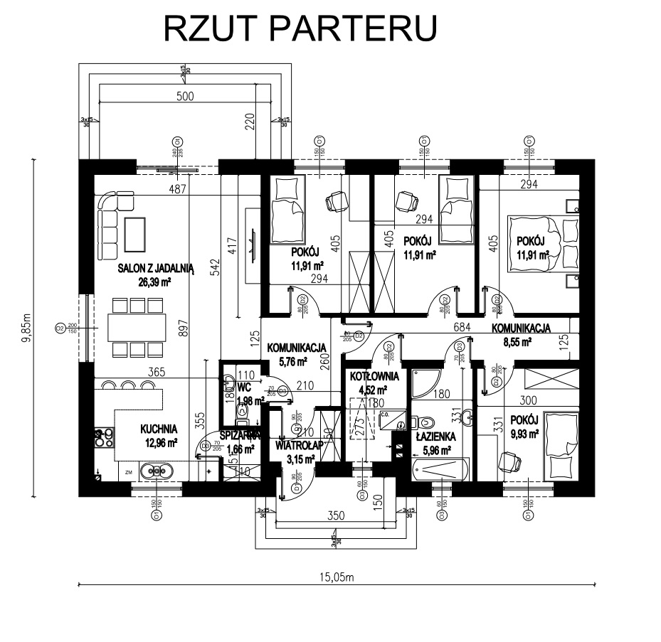 - Szerokość elewacji frontowej15.05 m