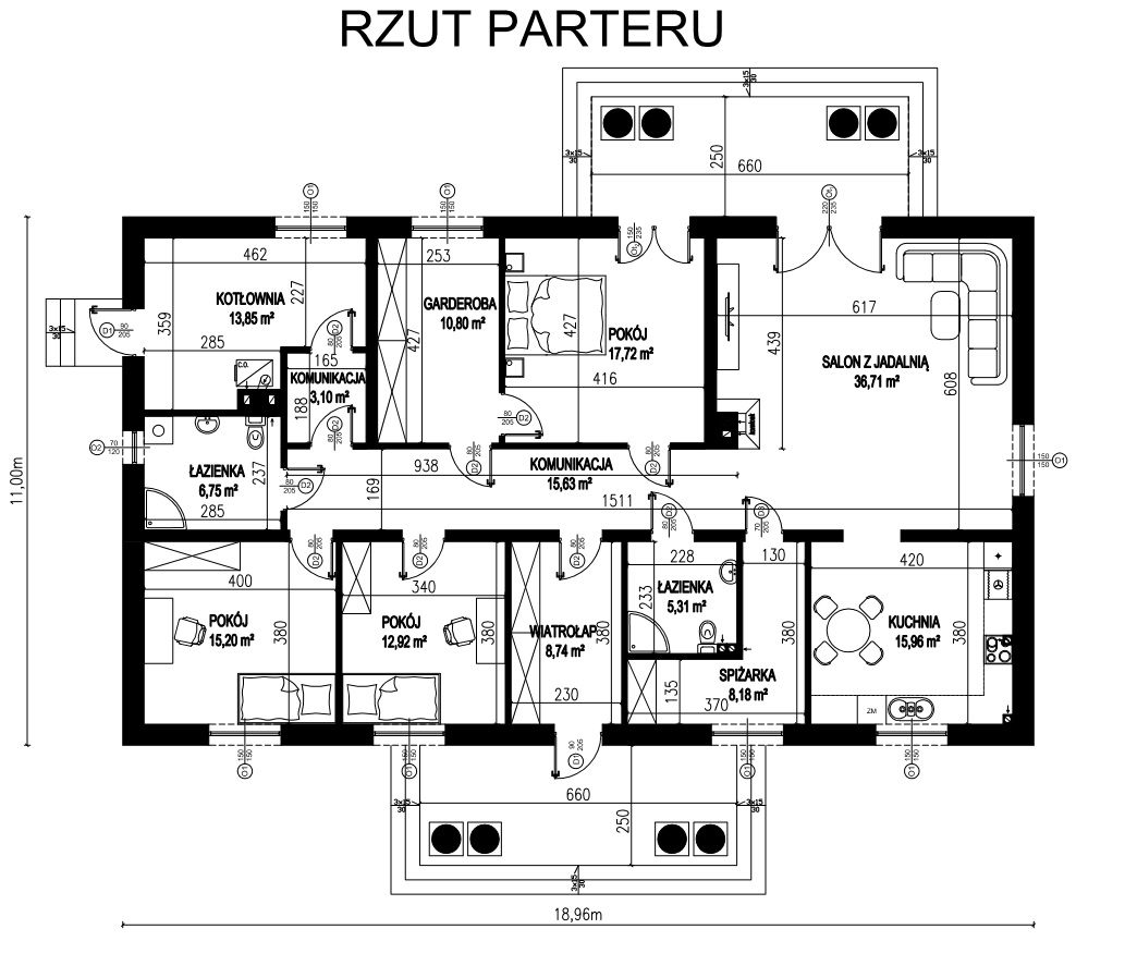 - Ogrzewanie na paliwa stałe lub instalacja gazowa w projekcie