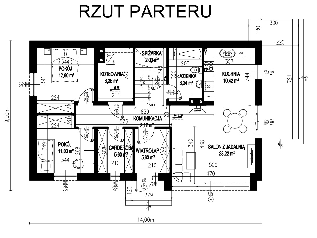 - Szerokość elewacji frontowej14.00 m