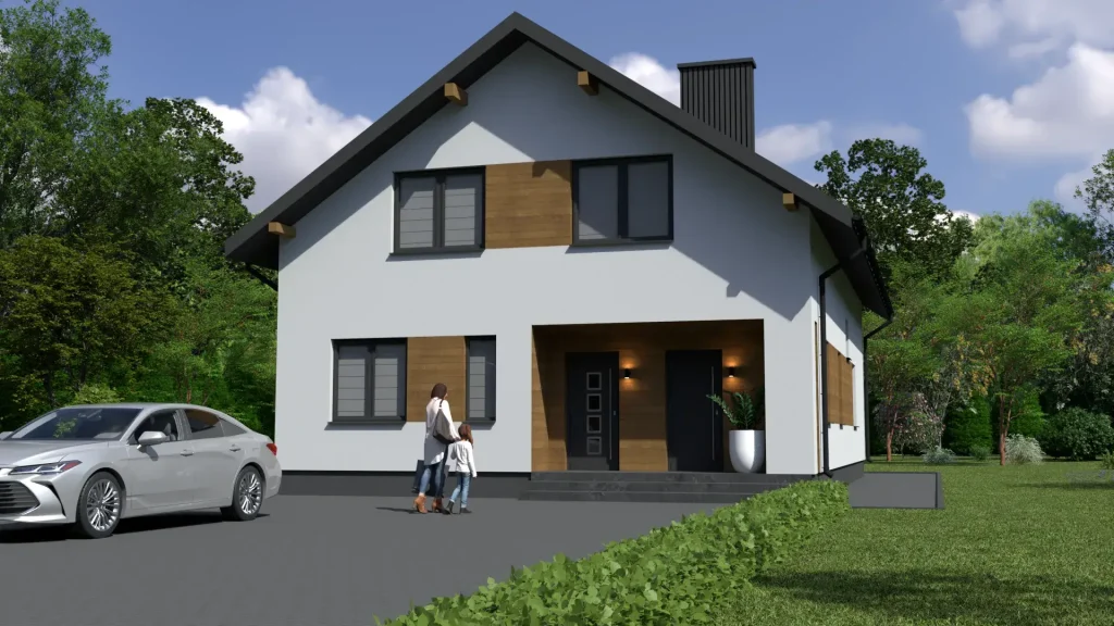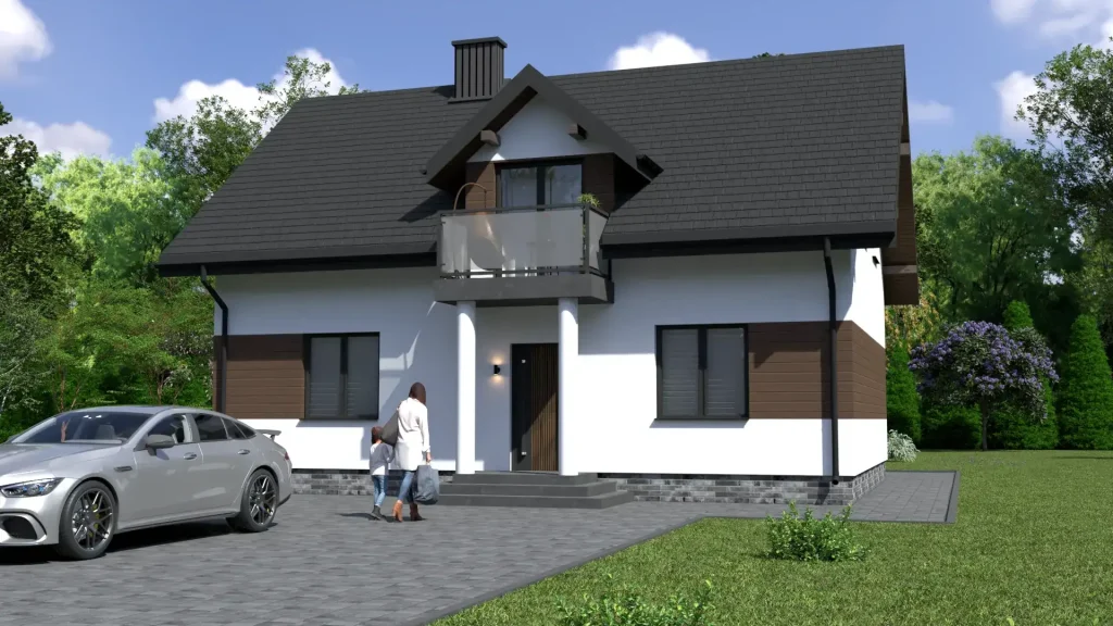 Projekty domów z poddaszem często wyróżniają się atrakcyjną bryłą, nawiązującą do tradycyjnego polskiego domu jednorodzinnego, ale w naszej ofercie znajdziesz także nowoczesne interpretacje tego rozwiązania. Duże przeszklenia, proste formy, stonowane materiały i nowoczesne detale pozwalają stworzyć budynek o współczesnym charakterze, który jednocześnie pozostaje przytulny i funkcjonalny. Dodatkowym atutem jest możliwość zaplanowania balkonów, lukarn czy okien dachowych, które doświetlają poddasze i nadają mu indywidualny charakter.
